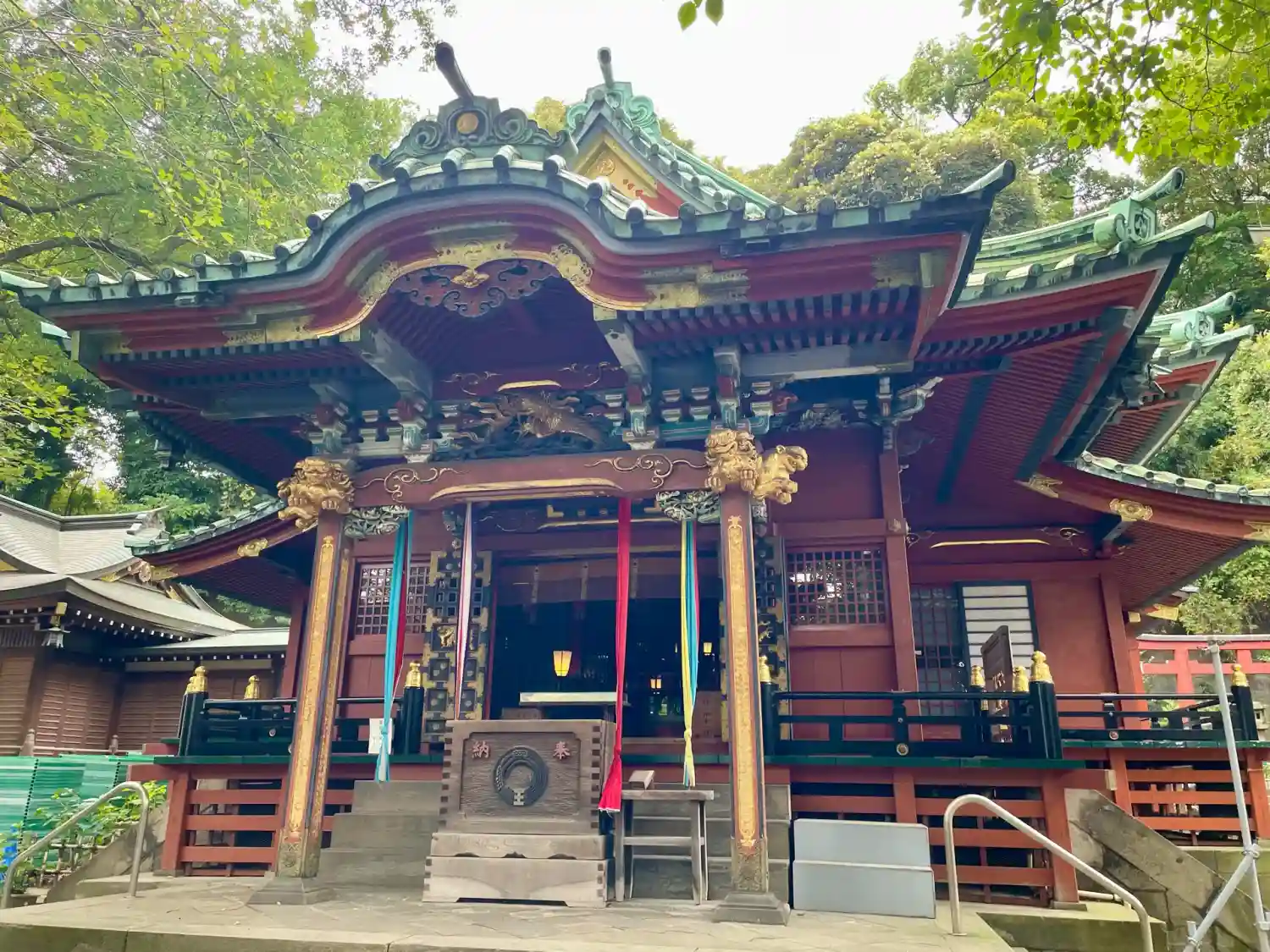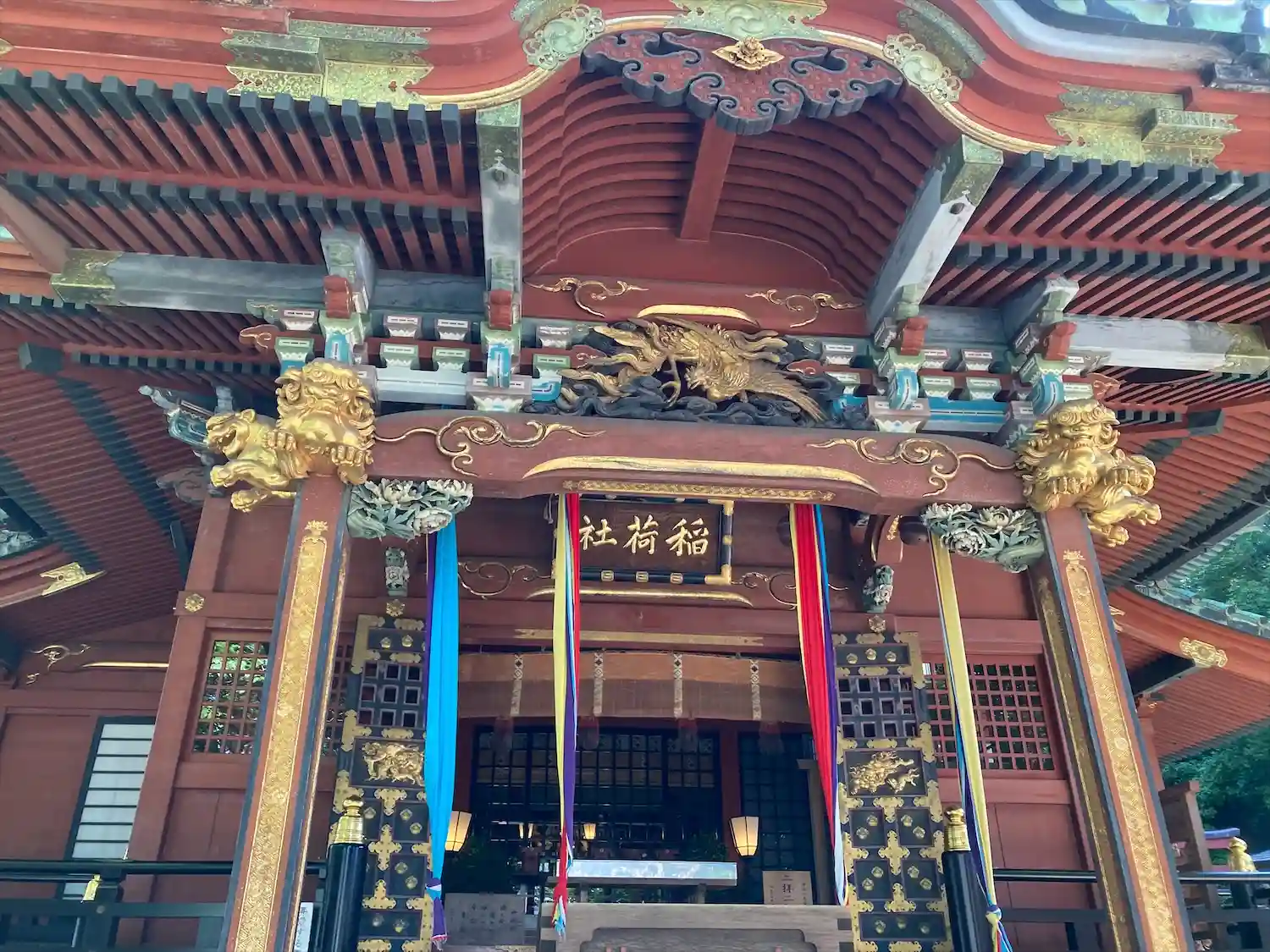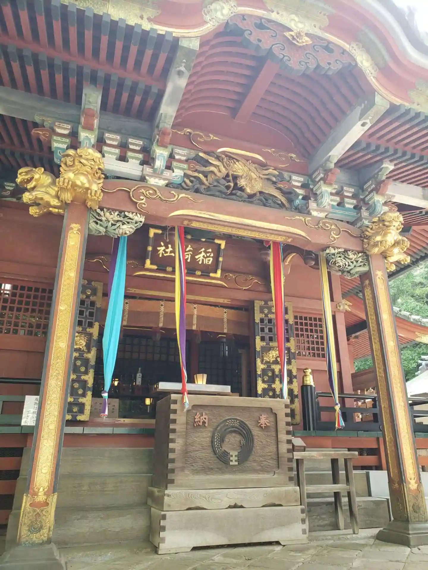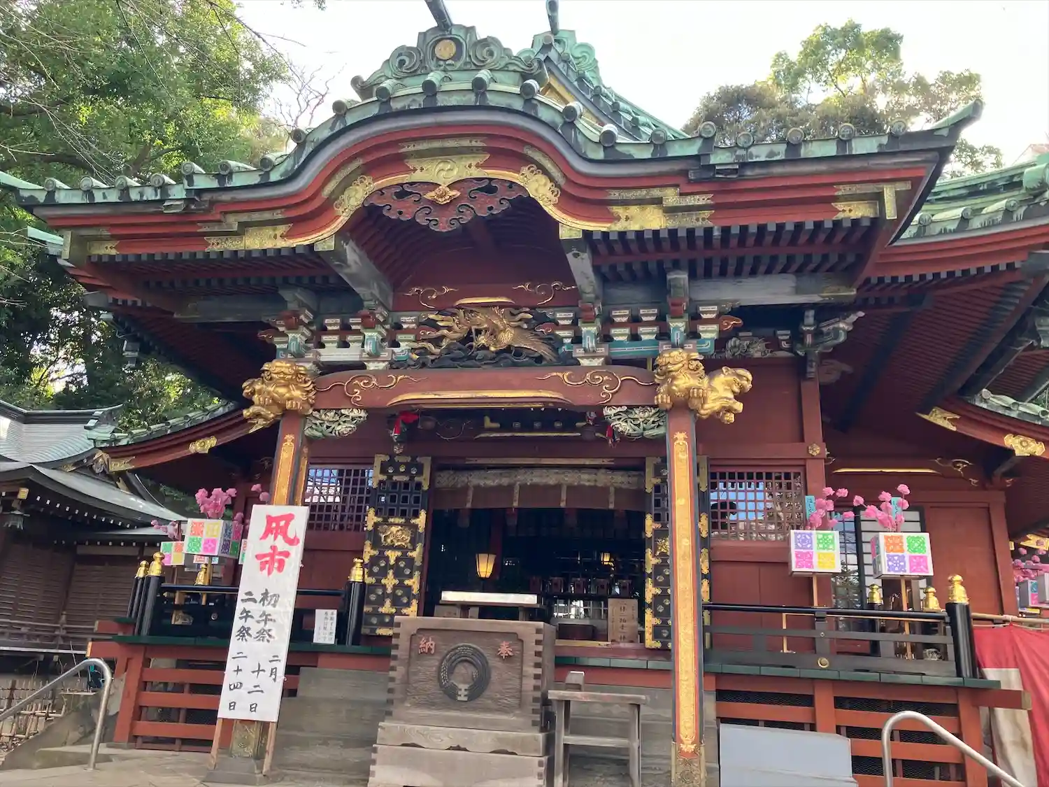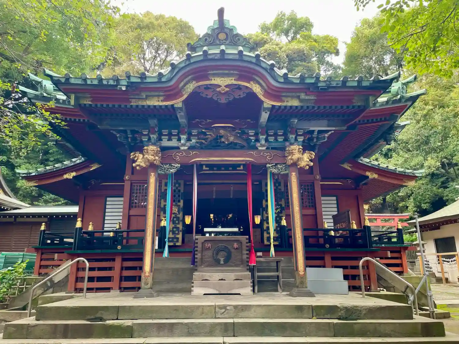 朱に金が印象的な豪華な拝殿✨