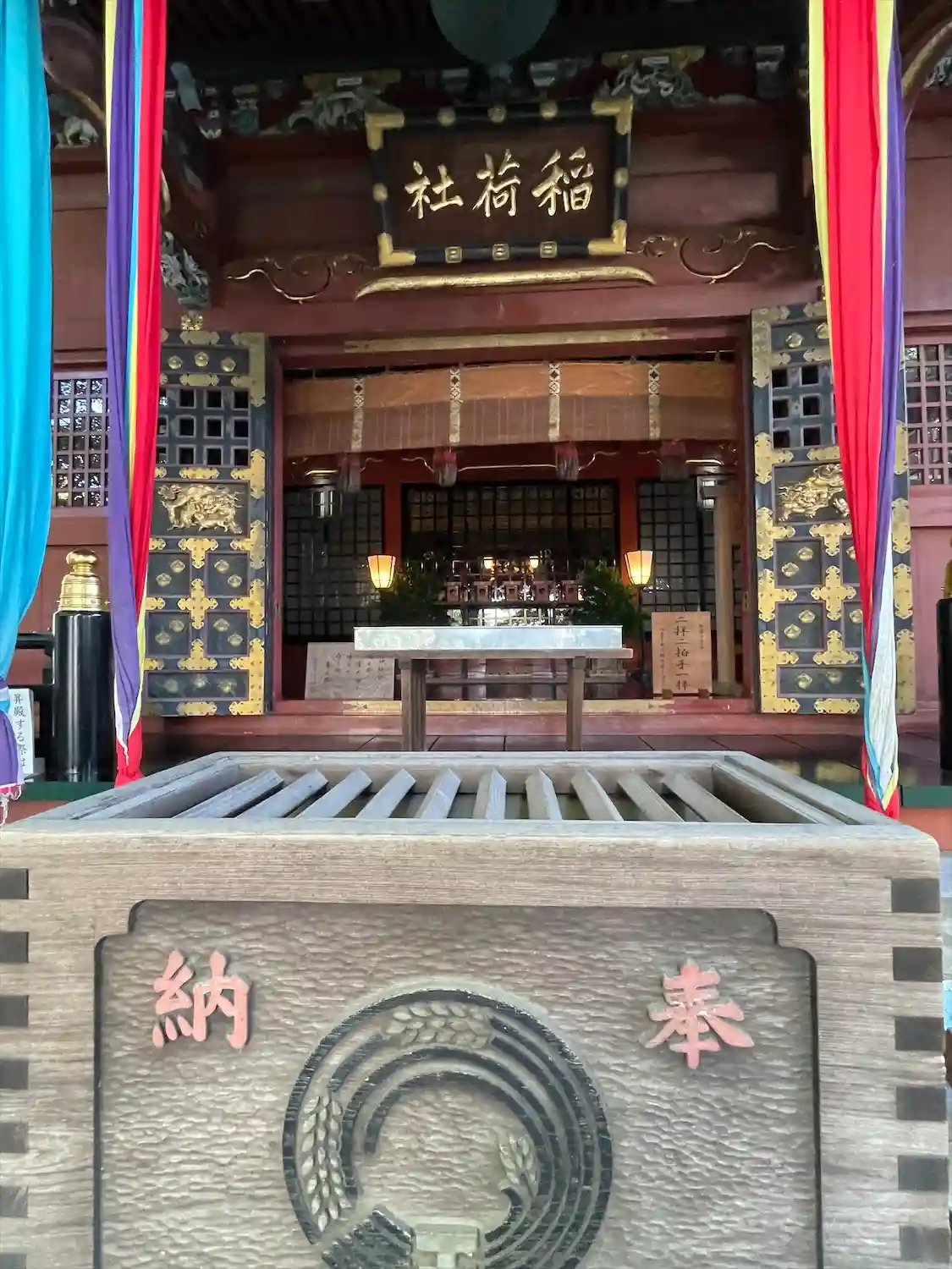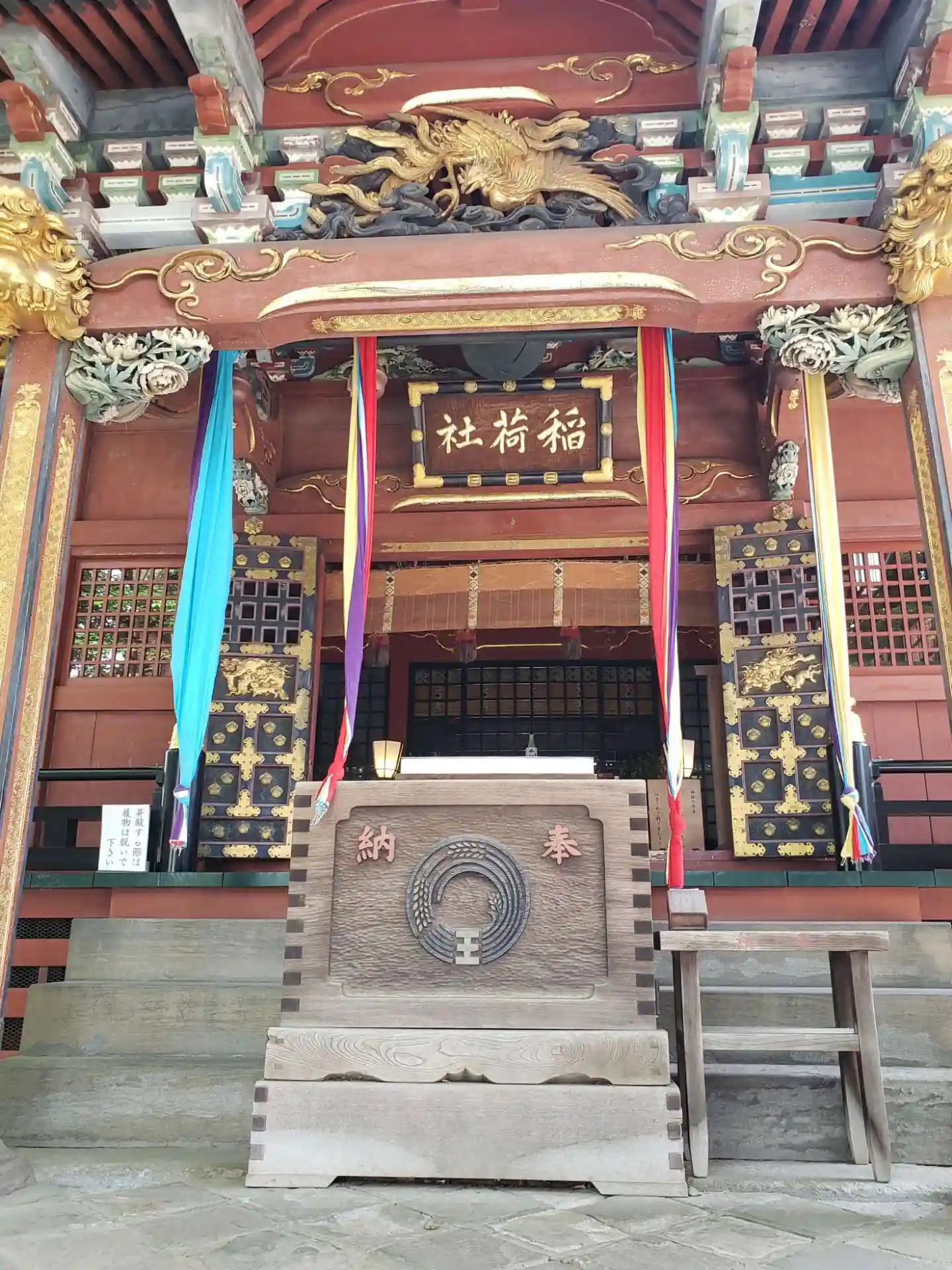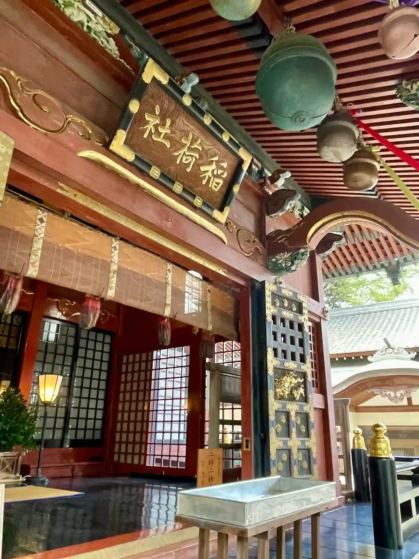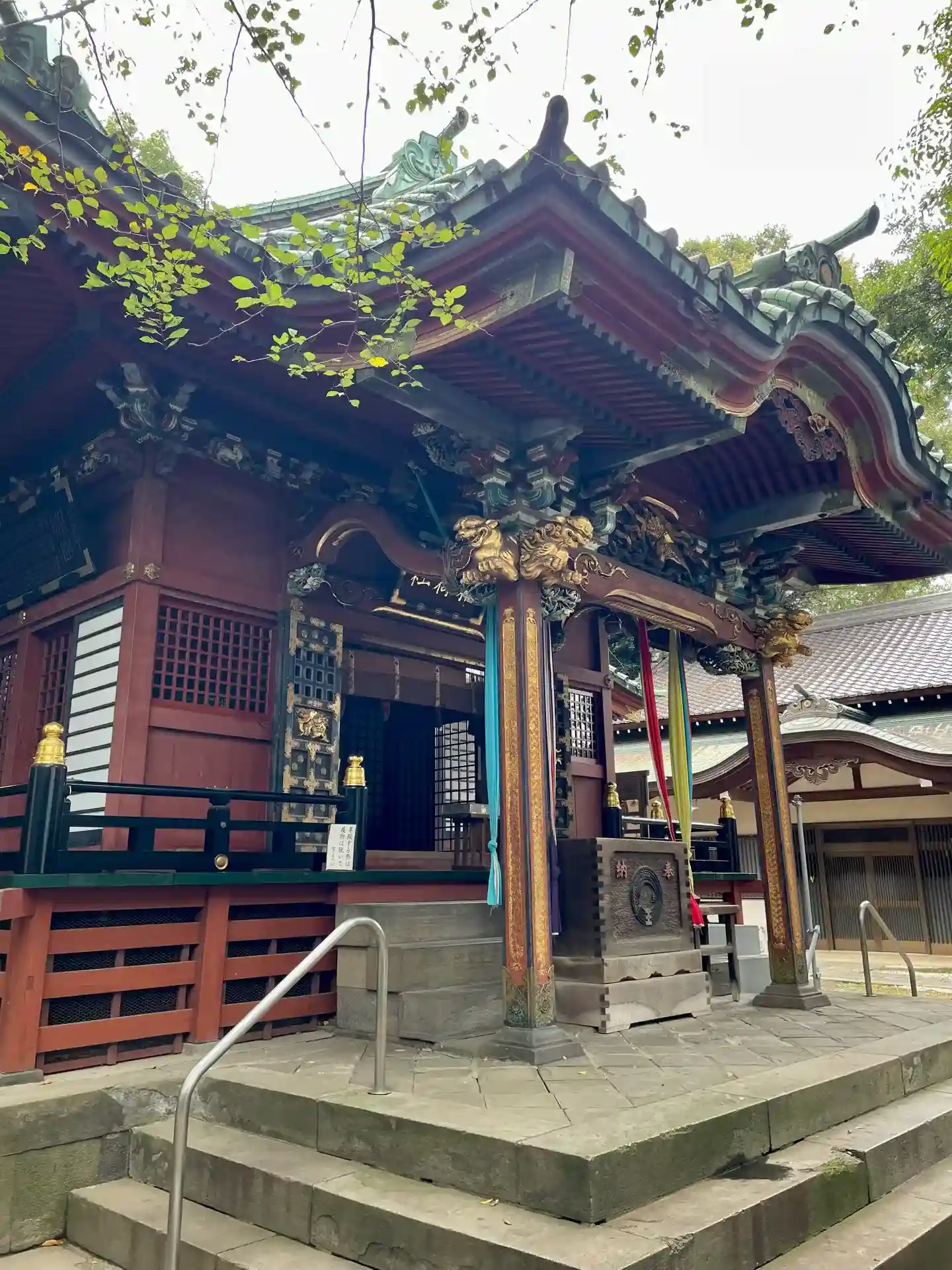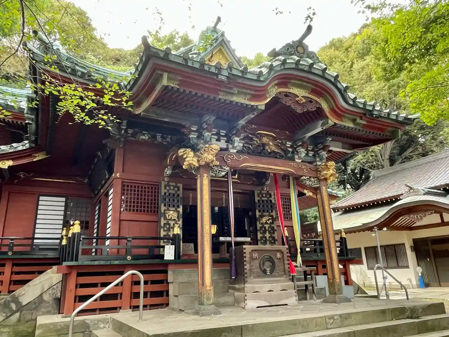 朱に金が印象的な豪華な拝殿✨