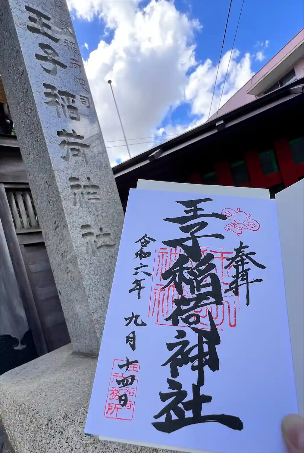 落語の「王子の狐」や浮世絵「狐の行列」などで有名ない王子稲荷神社に参拝。御朱印は直接御朱印帳に記載…