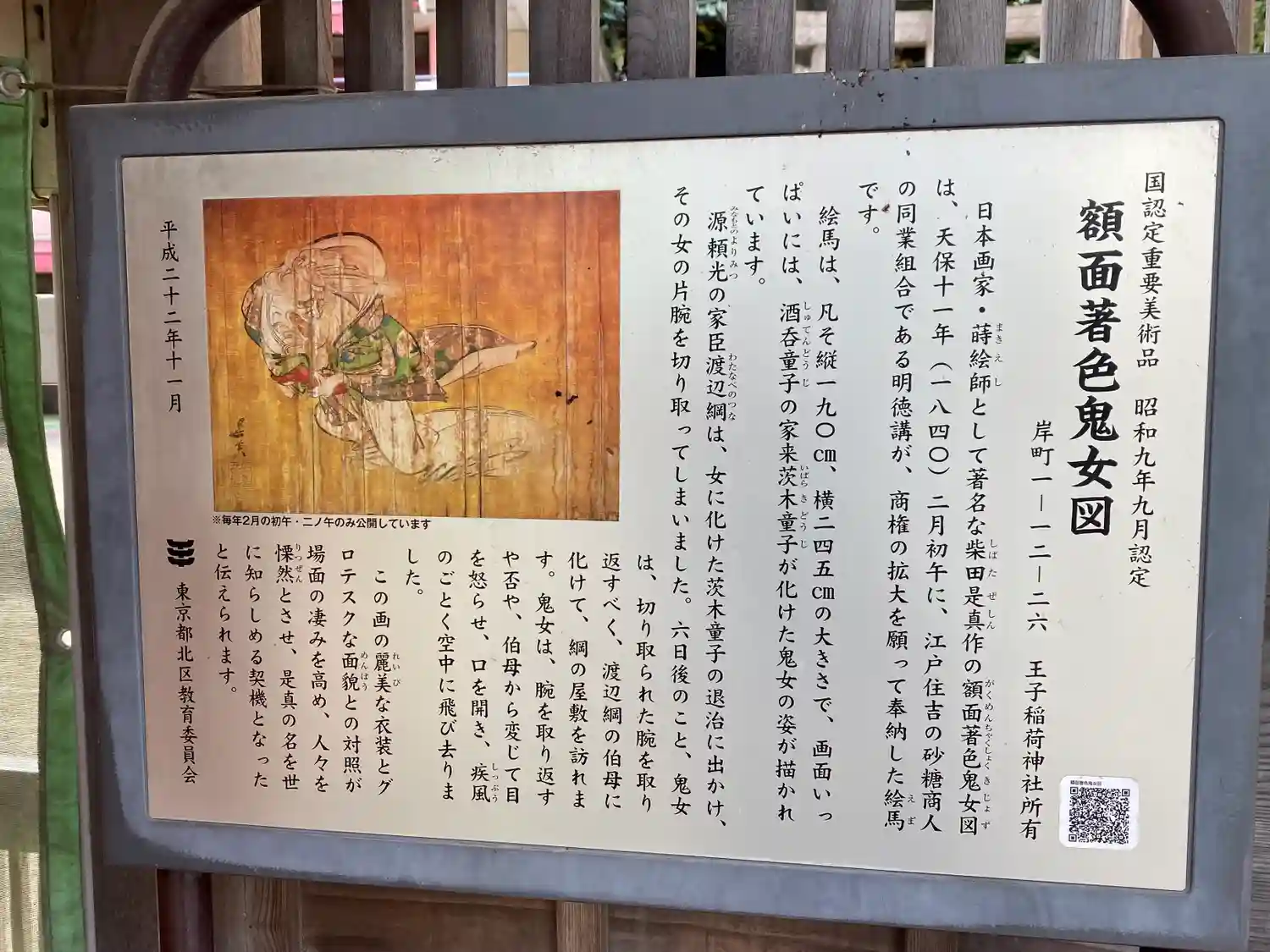 いつも王子神社の隣のコインパーキングに停めて歩いて行くのですが、鳥居をくぐってすぐ左の宝物殿の前に…