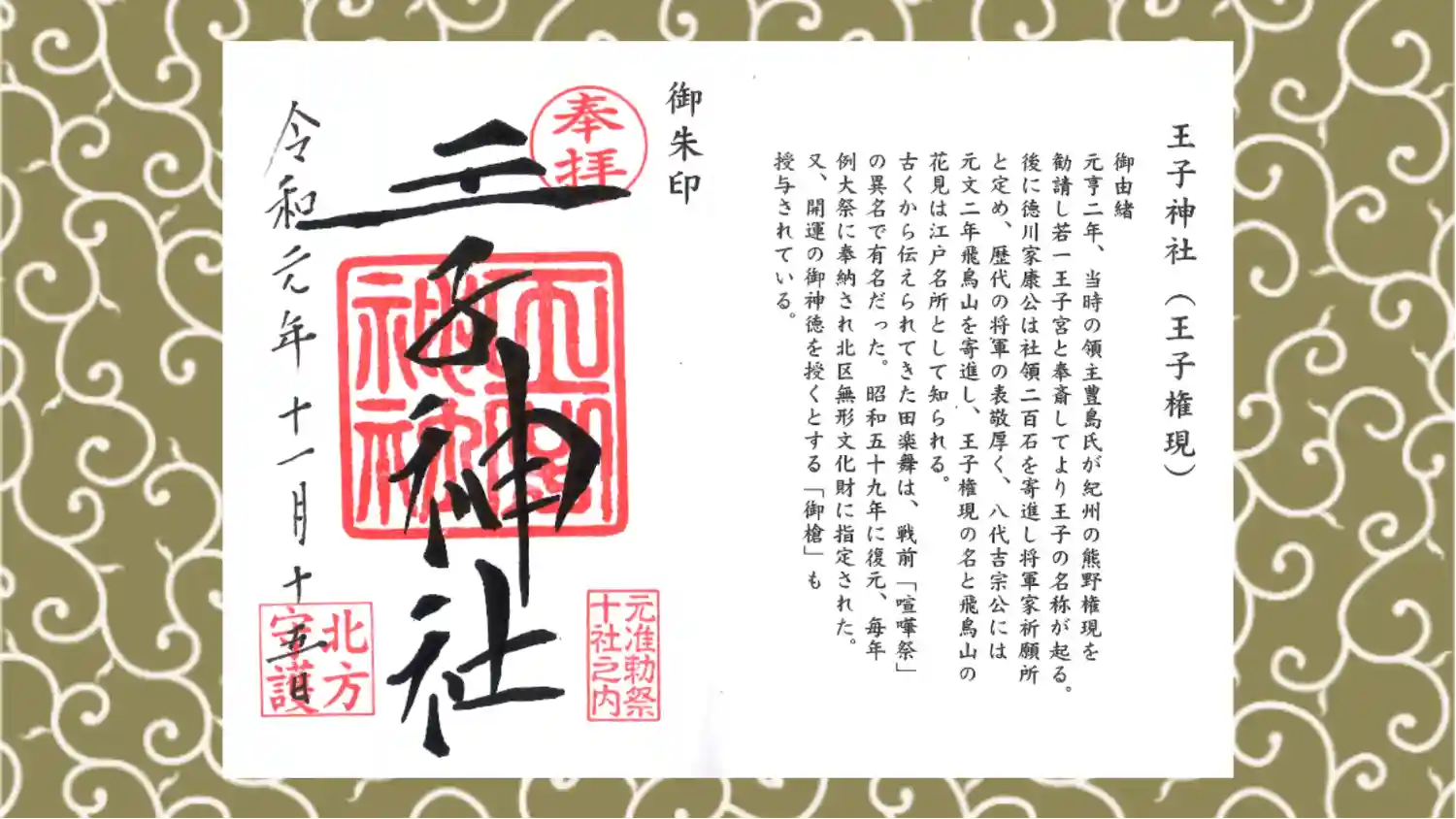 王子神社の御朱印