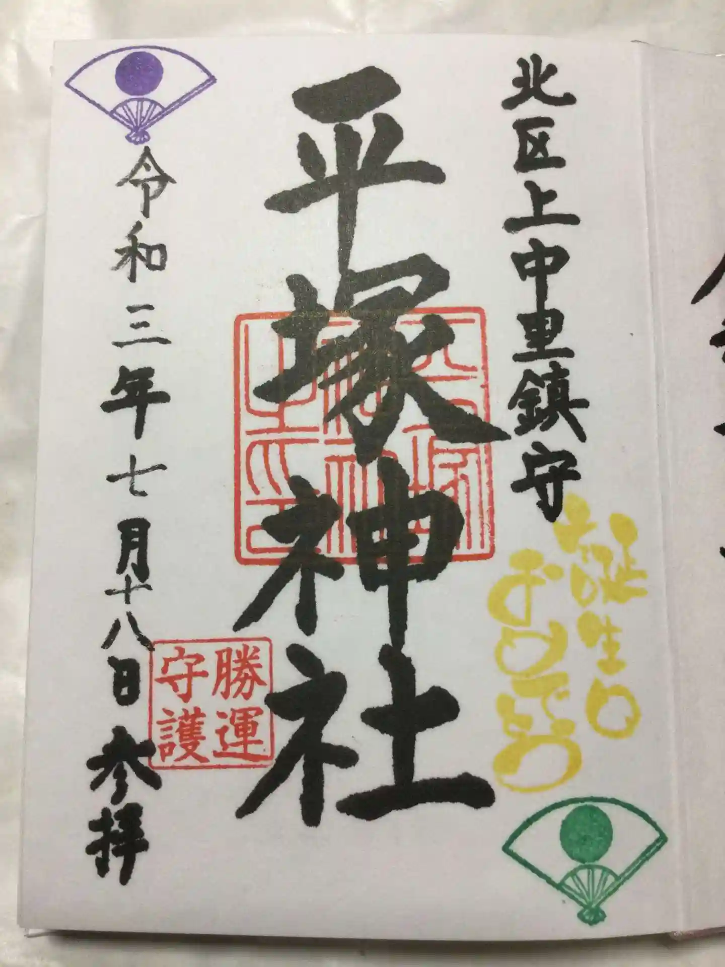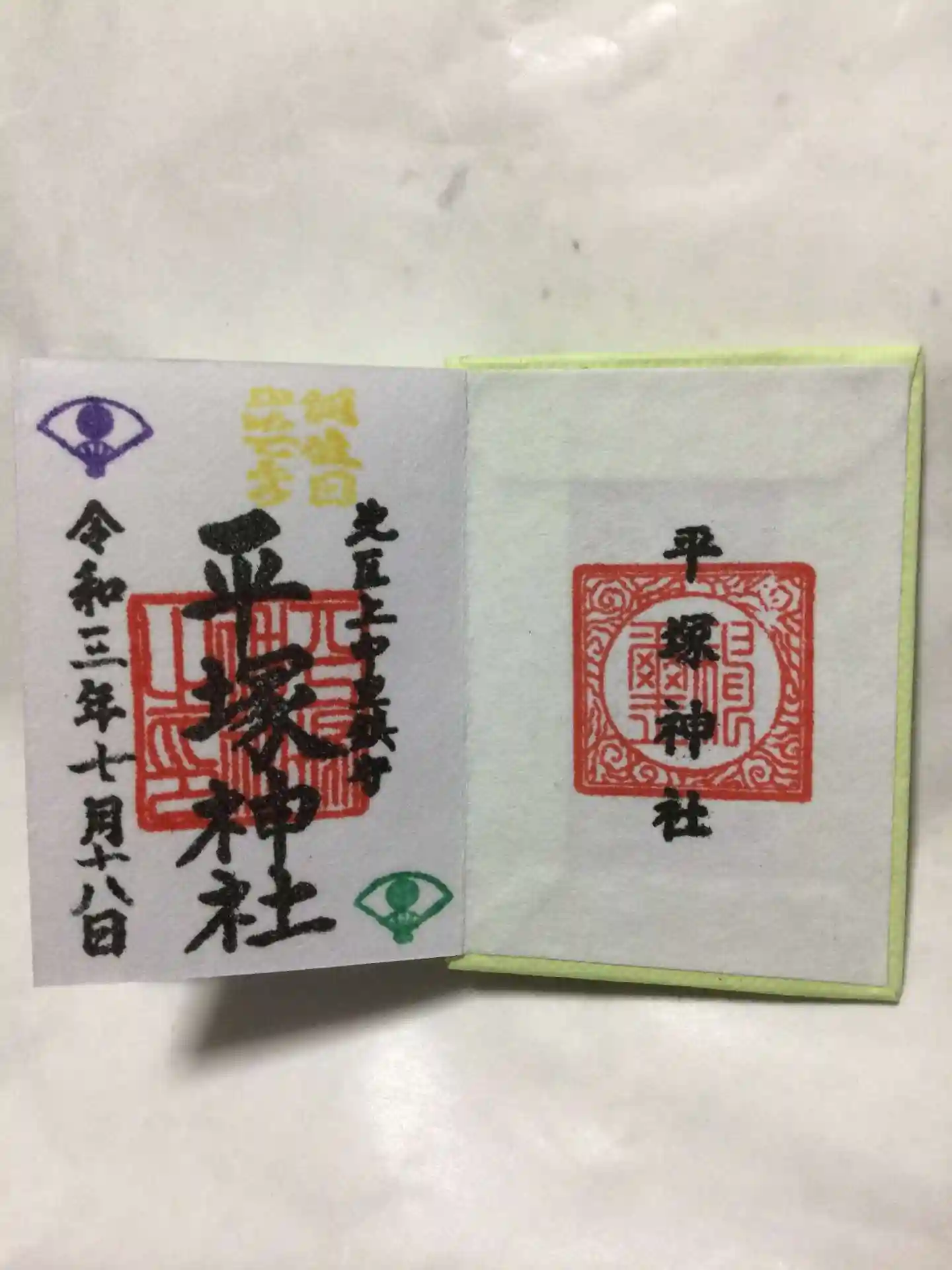 お誕生日御朱印を頂戴しに、滝野川八幡神社からそのまま徒歩で平塚神社へ向かいました。社殿中央にある、扇に日の丸がこの神社のトレードマークですが(平安後期の武将で、源頼朝・義経や足利将軍家の先祖、八幡太郎 源義家命が御祭神)その潔いデザインが大変カッコイイ!なんと、そのデザインのミニご朱印帳があることを知り、また即買。嬉しいことにこちらにもお誕生日御朱印をいだだけました。