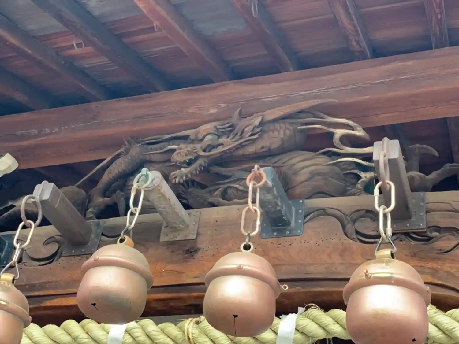 本殿のセンターにある、扇に日の丸がイサギいいデザイン!