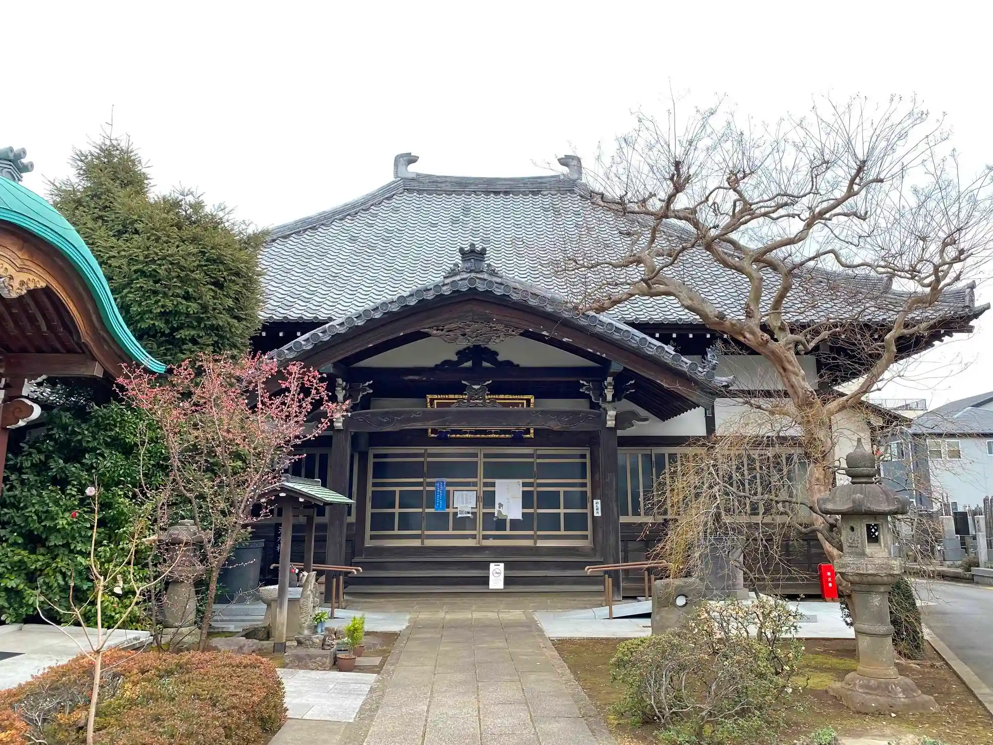 当寺は、JR京浜東北線・上中里駅の南方0.2kmの住宅街の中にある。車だと本郷通りからちょっと入った場所になる(平塚神社は本郷通りに面している)。
