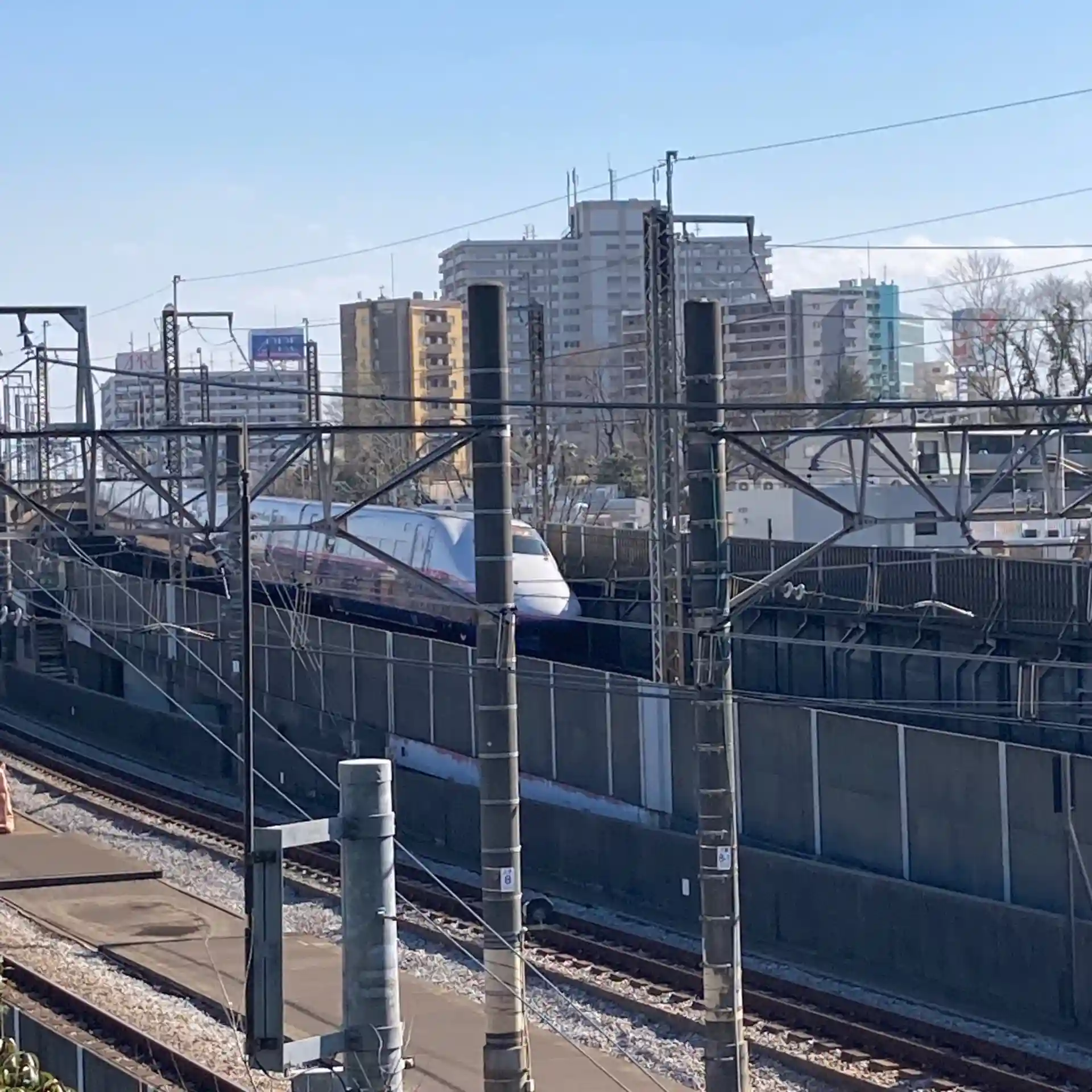 新幹線初めとした電車が見えます。