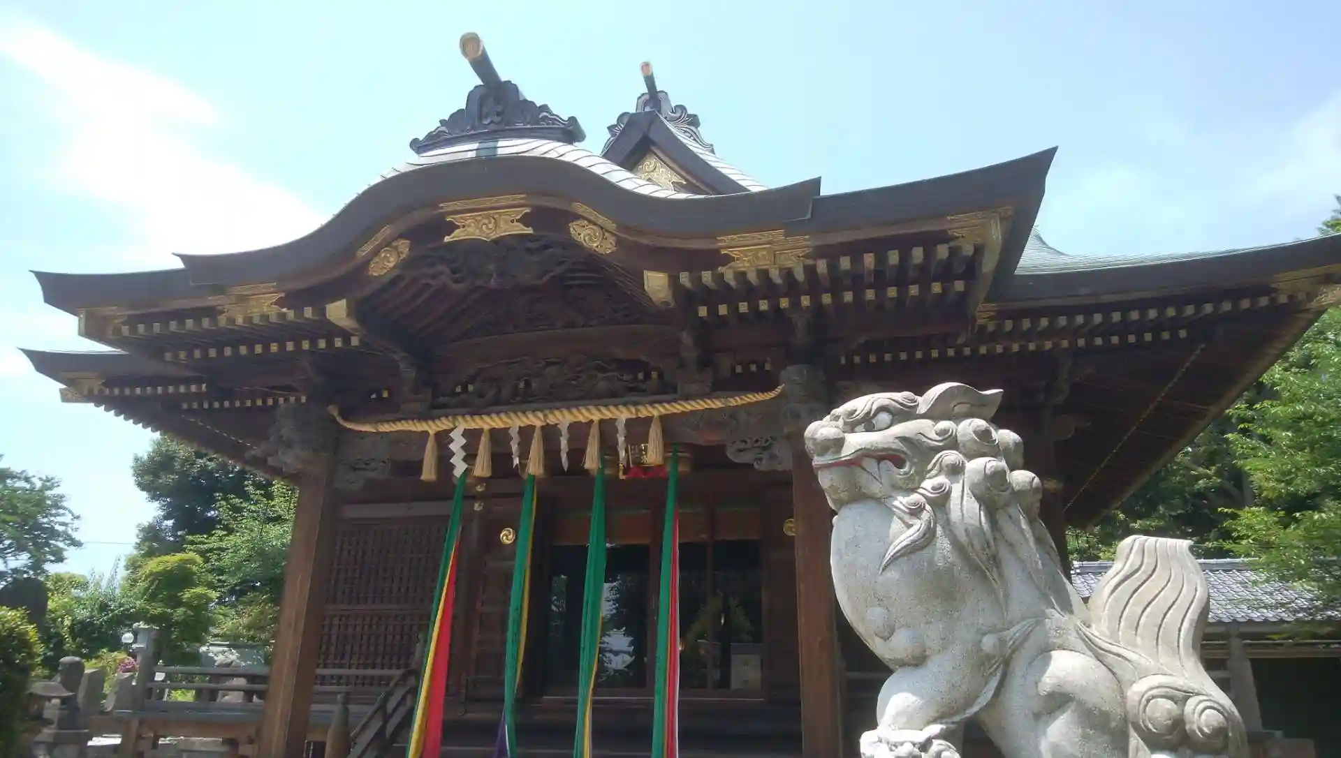 境内から東北・上越新幹線が見えるということで、以前からお参りしたいと思っていた神社です。神社の彫刻(彫り物)も立派です。木鼻の獅子が迫力があります。境内から新幹線と東北本線・埼京線が見えました。御朱印もいただきました。