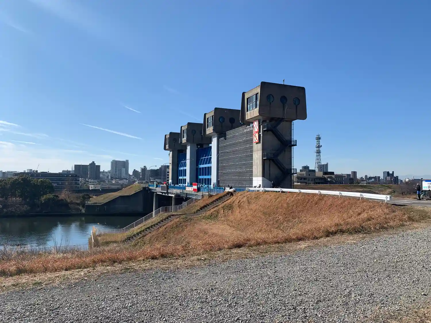 荒川を北に走り、岩淵水門の近く鎮座されている八雲神社にお詣りしました。狛犬が上向きなのがいいですね…