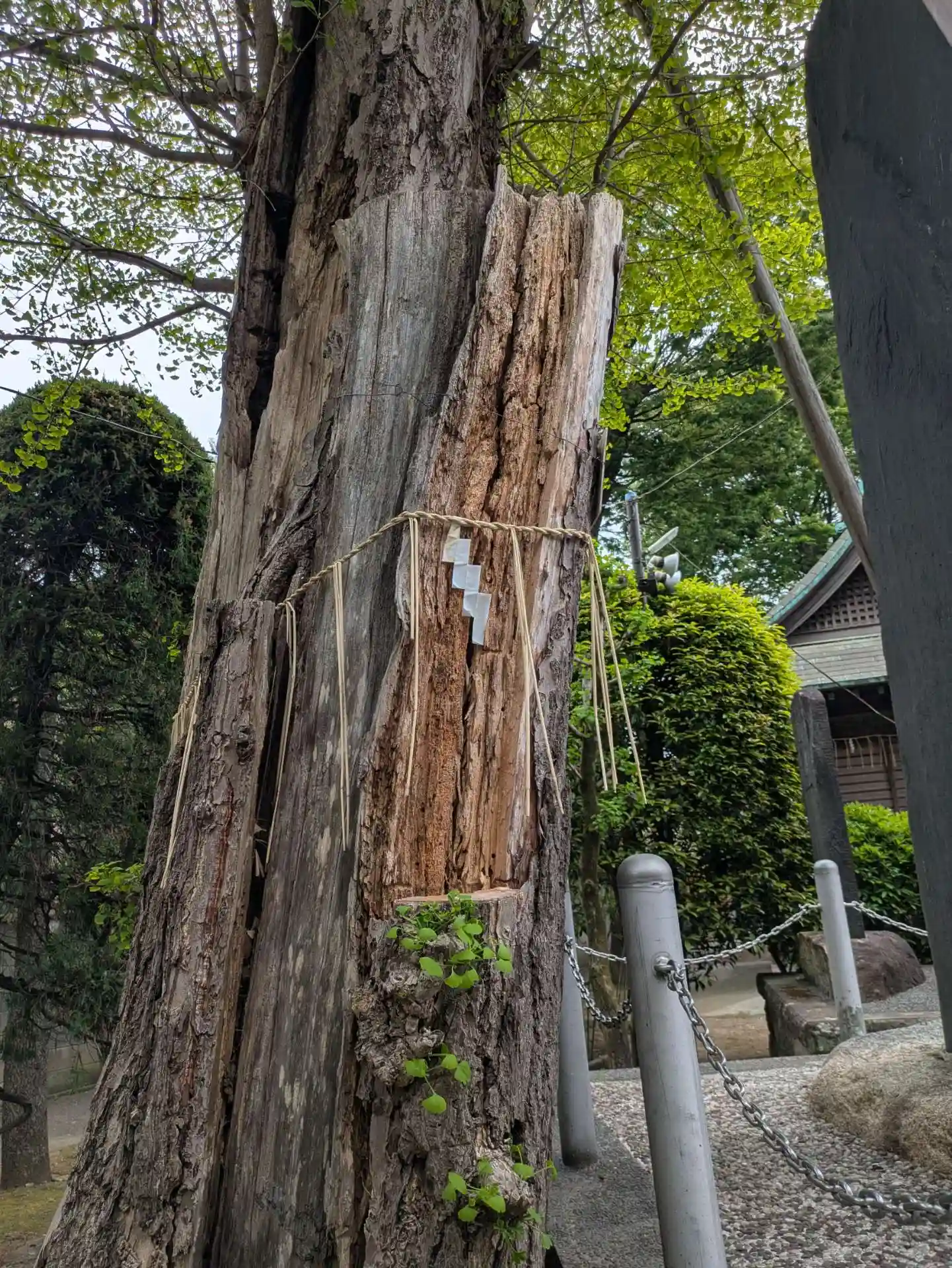 伊豆山神社の梛の木を氏子さんが育成し寄贈されたものですが、切り株だけ残っていました