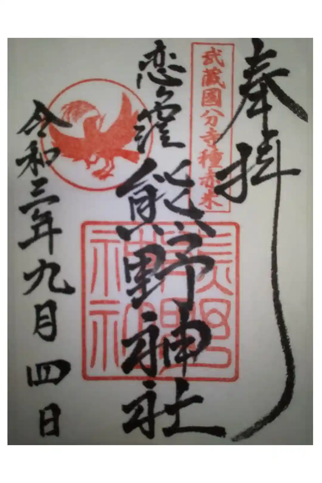 1枚熊野神社周辺の御朱印