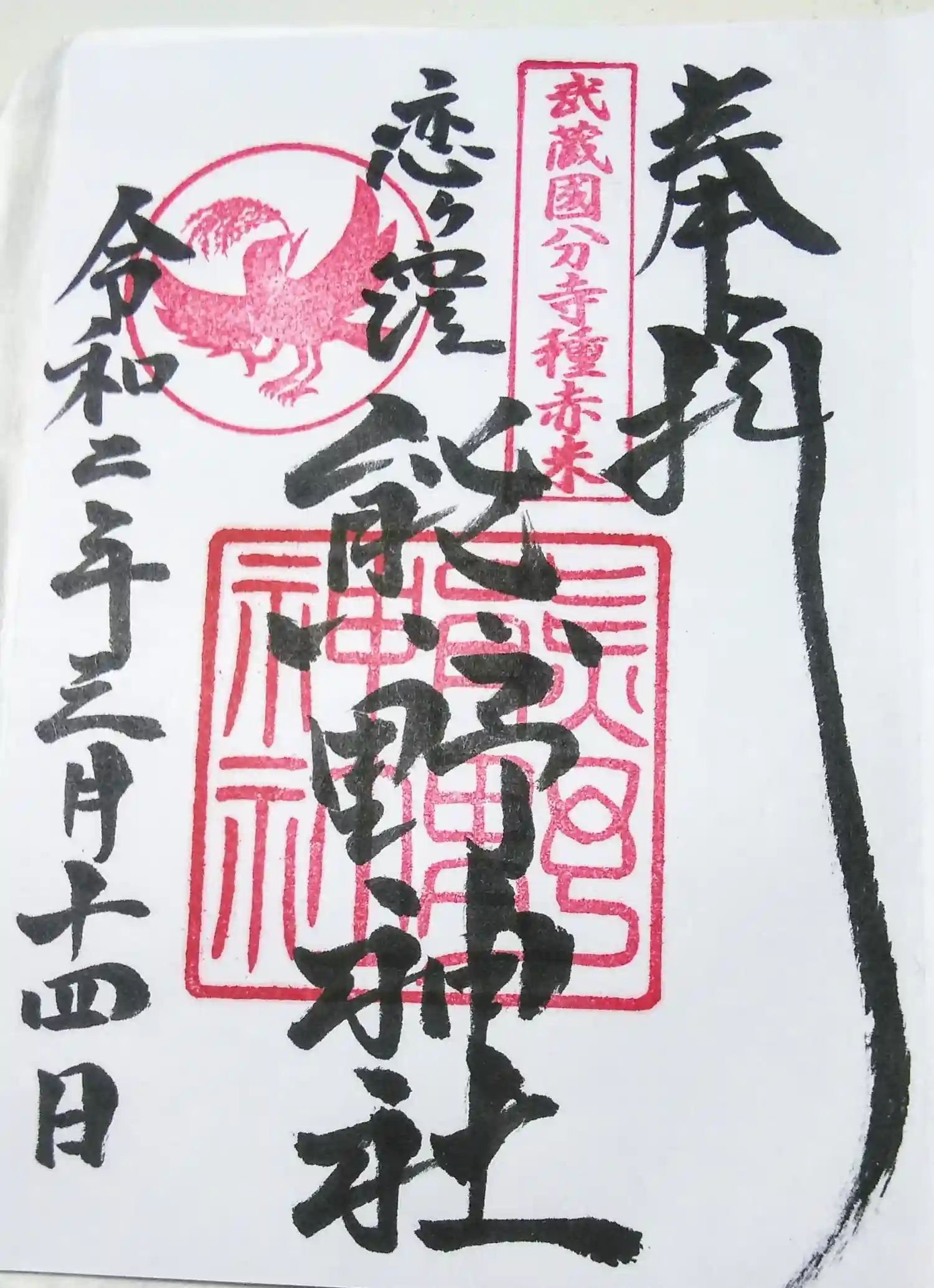 『奉拝 武蔵国分寺種赤米 恋ヶ窪 熊野神社 令和七年二月二十一日』