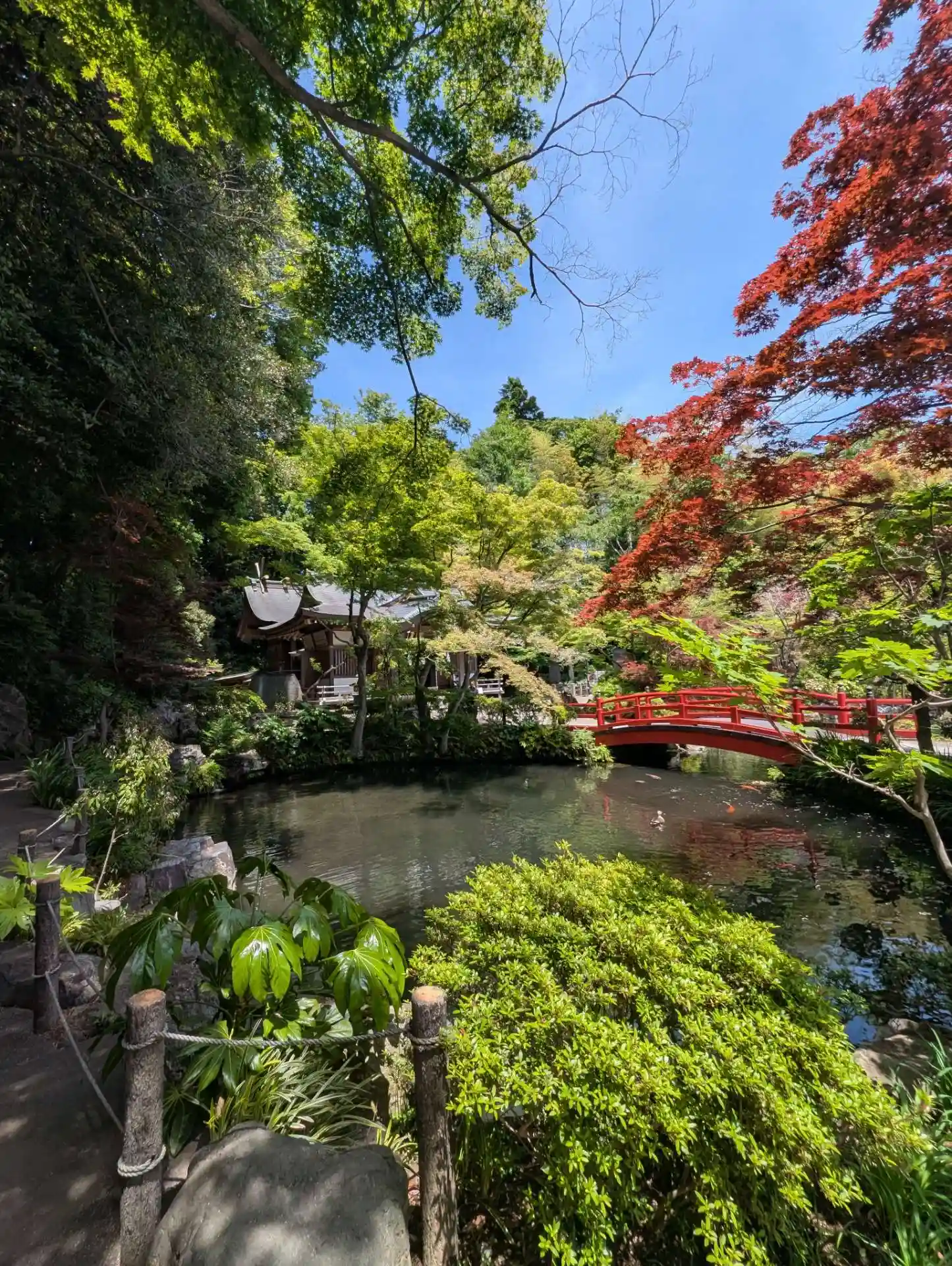 神社は細部まで丁寧に手が入っていて、夏の日差しに池もお社も全てが煌めいて…