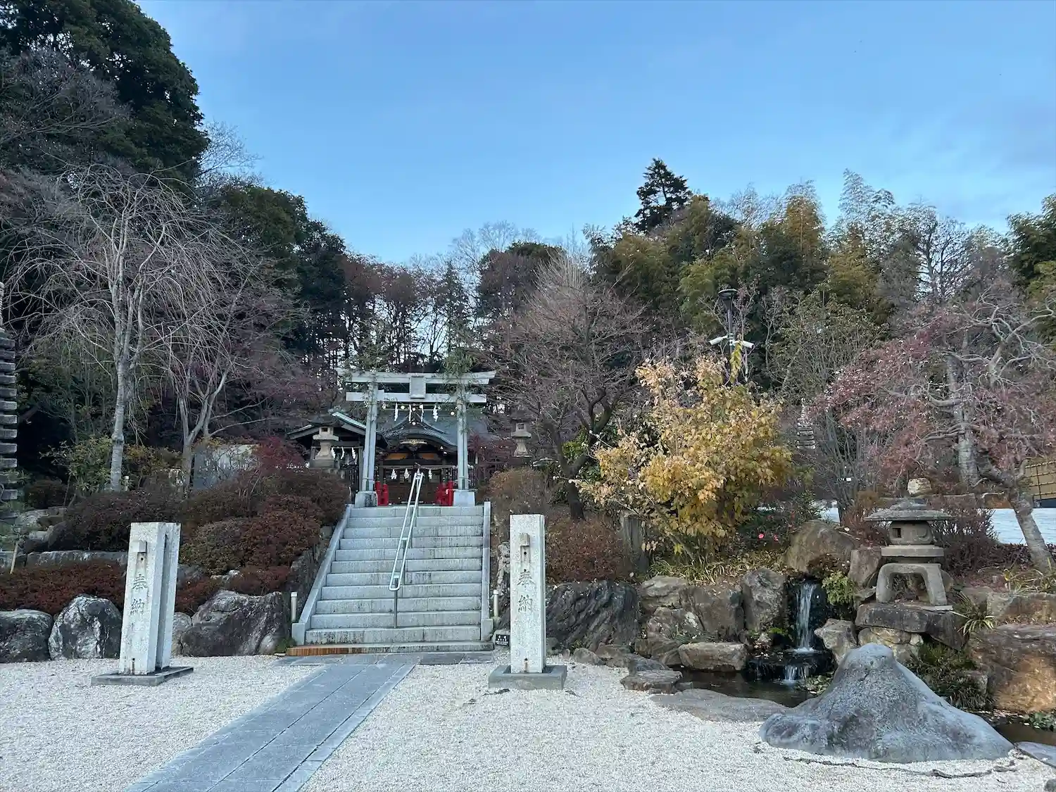 小さな滝?があってとても綺麗な神社でした…