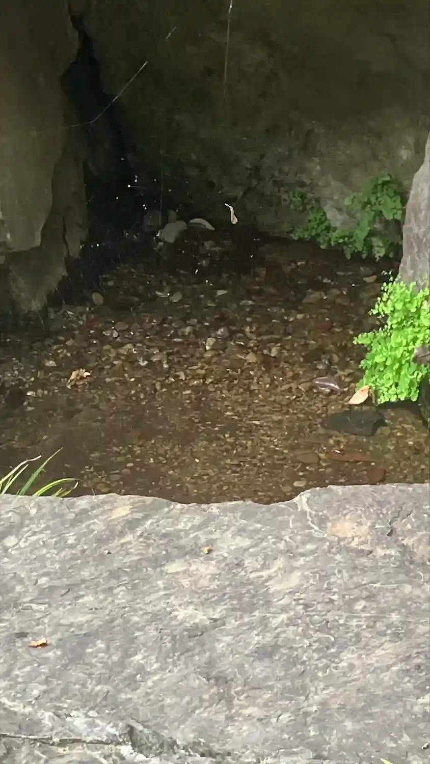 本殿向かって左側に湧水あり。清らかな水が流れています✨