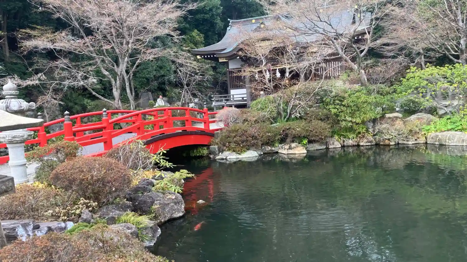 錦鯉もゆうゆうと泳いでて。