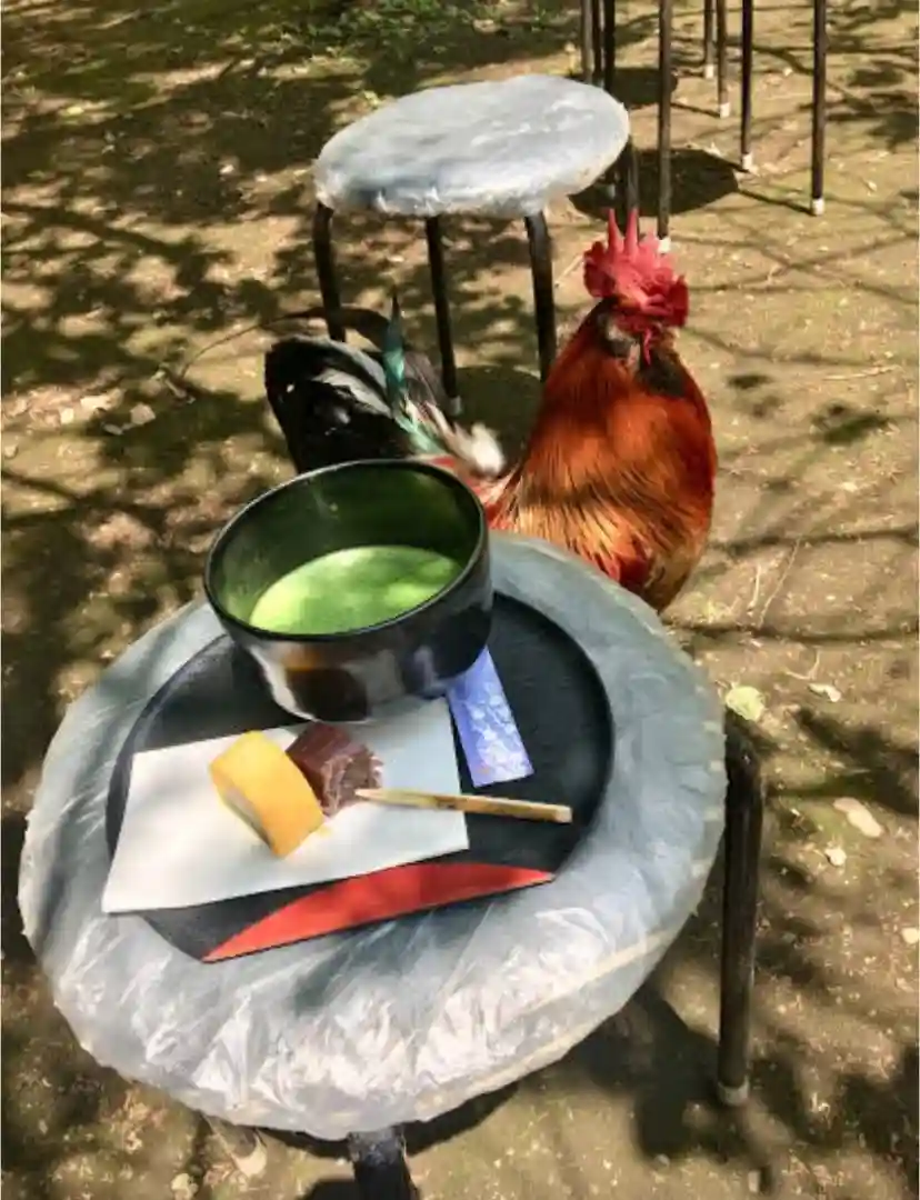 お参り後 境内で🐓さんとひと休み😊