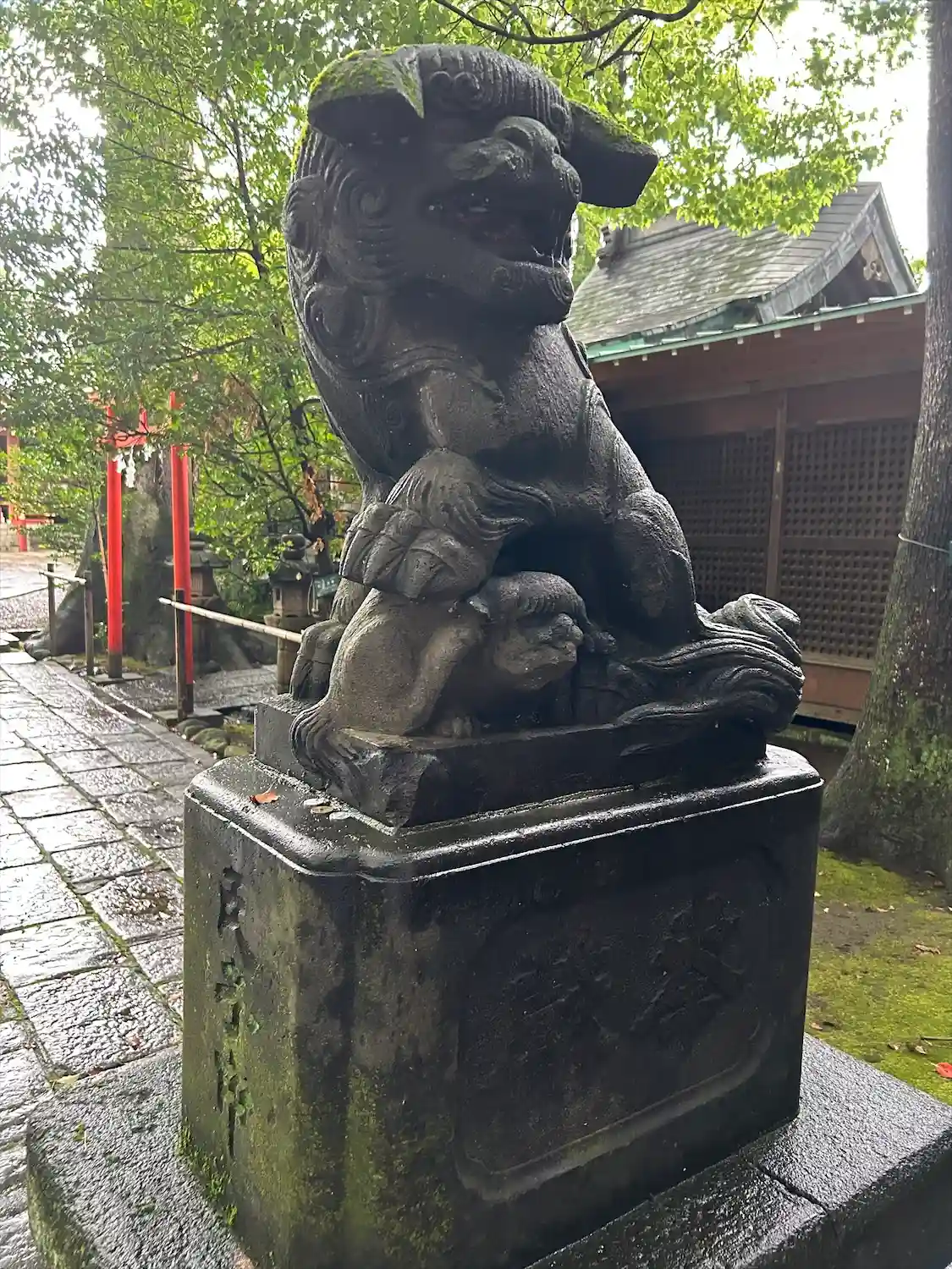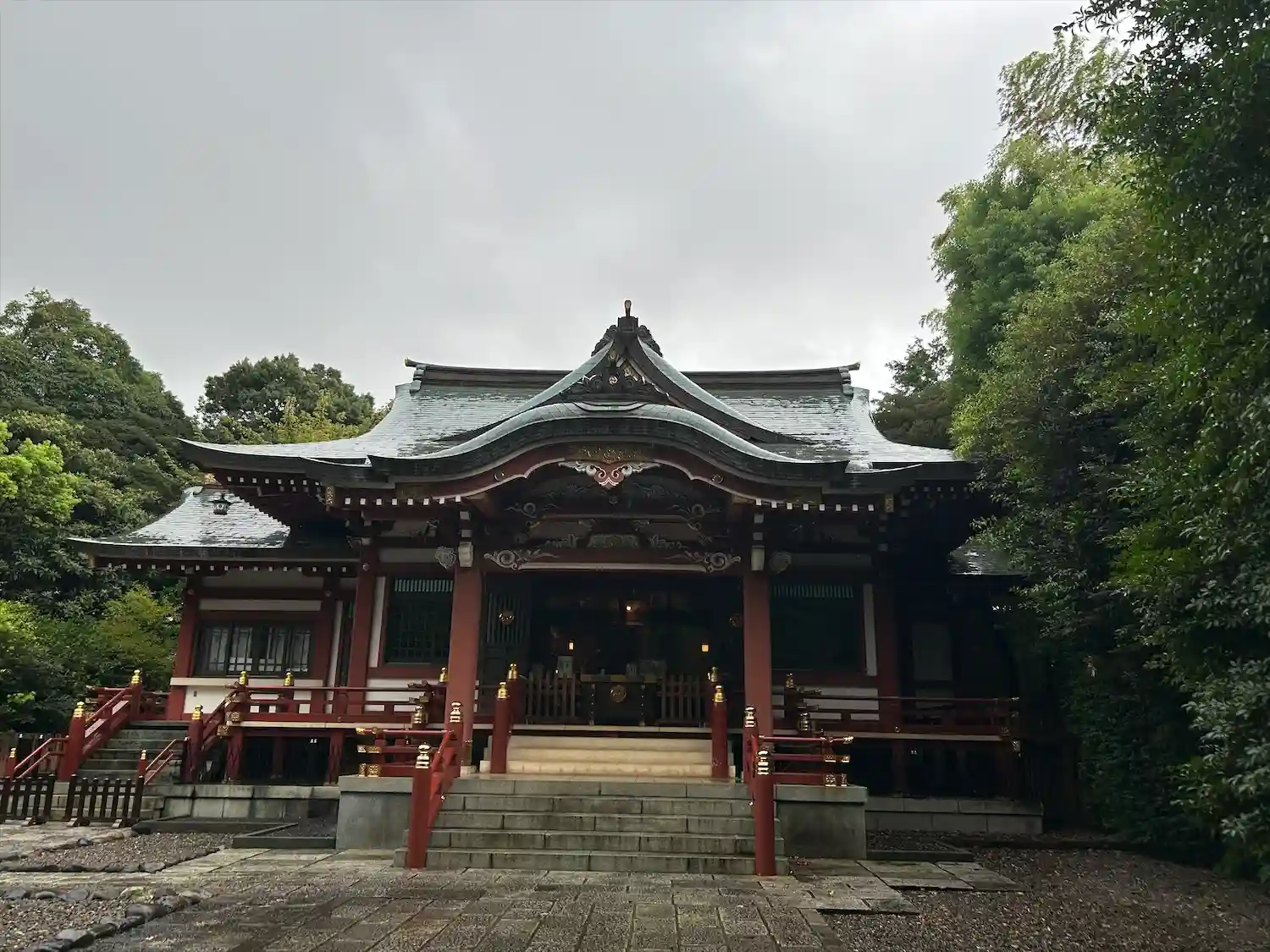雨に濡れる綺麗な社殿が見れました。