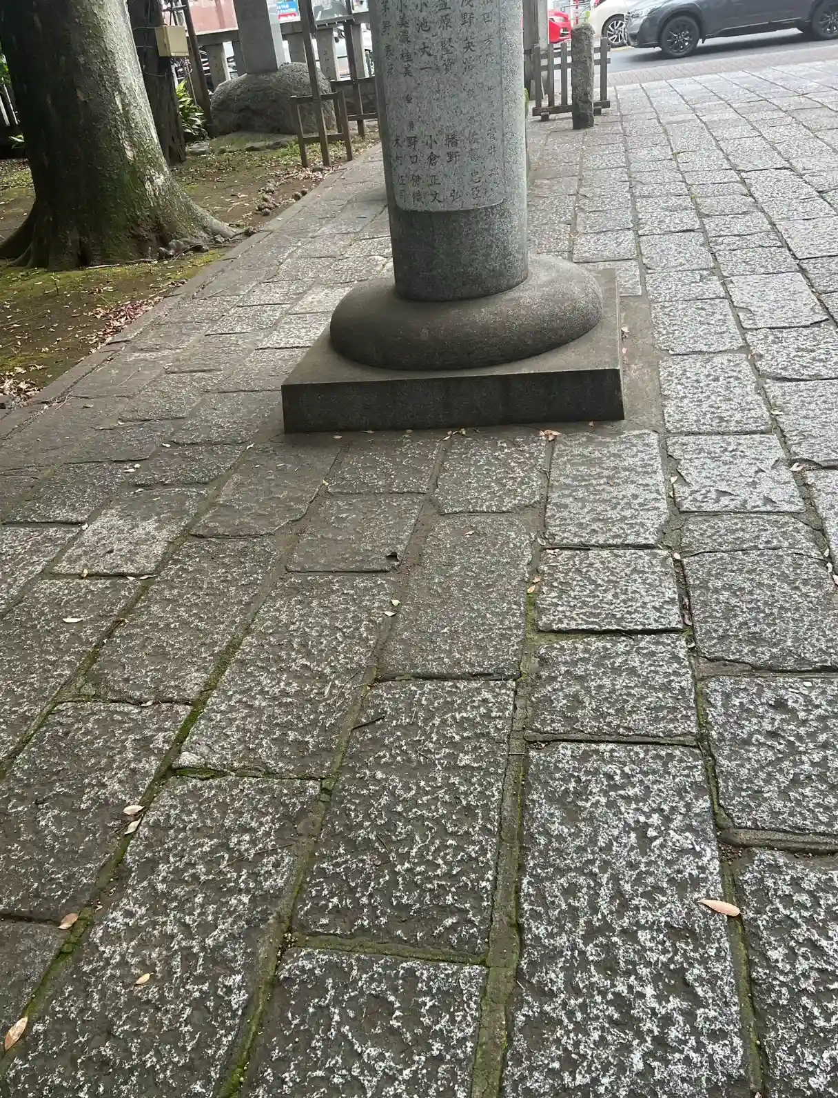 鳥居は地図記号としても使われる。この小さな印ひとつで「ここは神社ですよ」象徴的に示しているのだが、現地で目にすると、記号以上の存在感を持つ。柱を支える台石に目をやると、しっかりと地面に根を下ろし、鳥居全体を支えていることがわかる。その石の重みや存在感が、神域の安定感や、訪れる人々を迎え入れる力を象徴しているかのようだ。