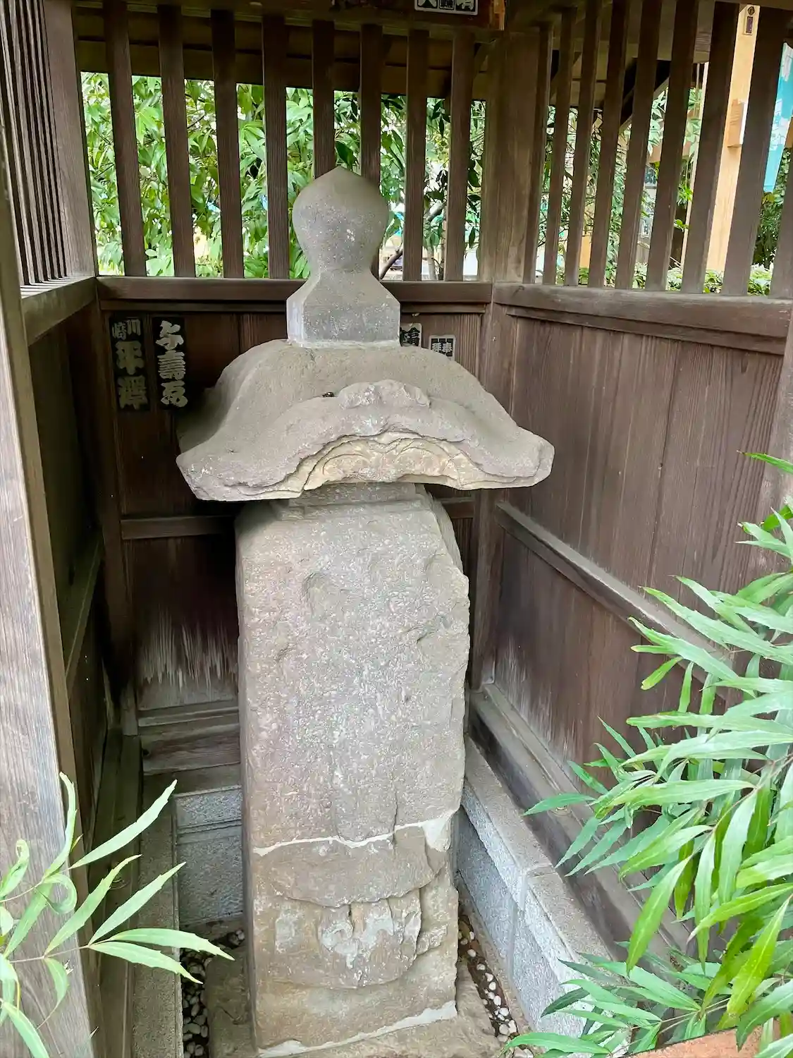 拝殿前方右手に、木陰に隠れるようにして建てられていたご神石。●道神と書いてあるような?何て書いてあるのか、どなたかご存知でしたら教えてください。