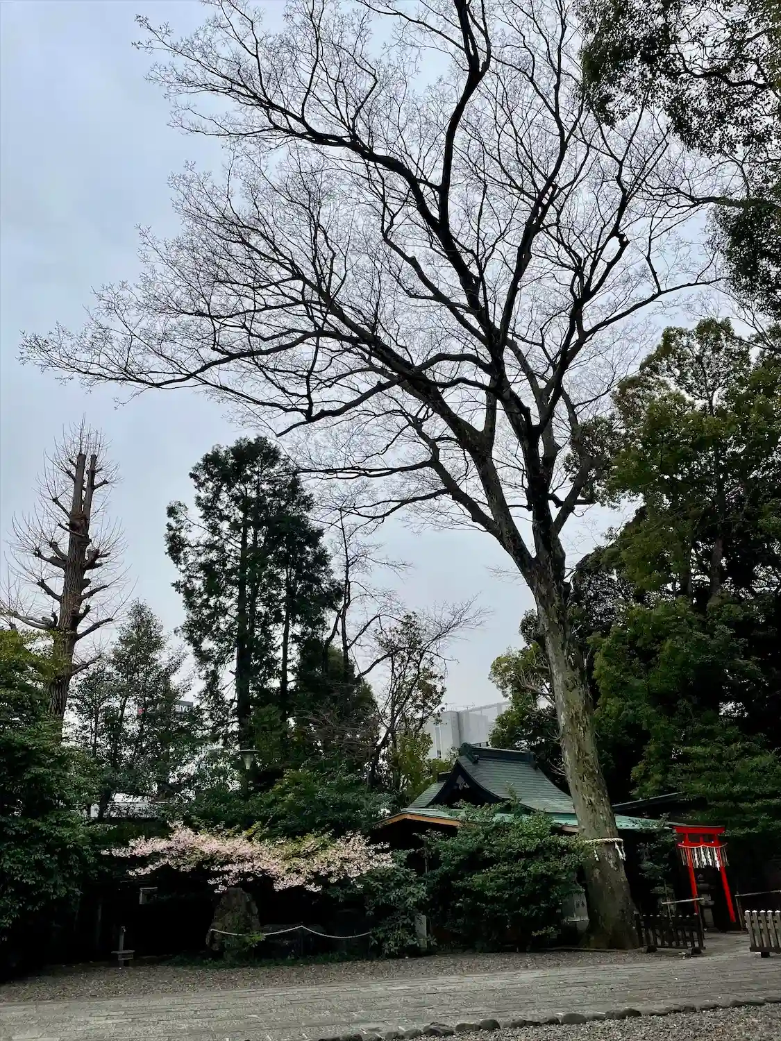 拝殿から見た御神木です。