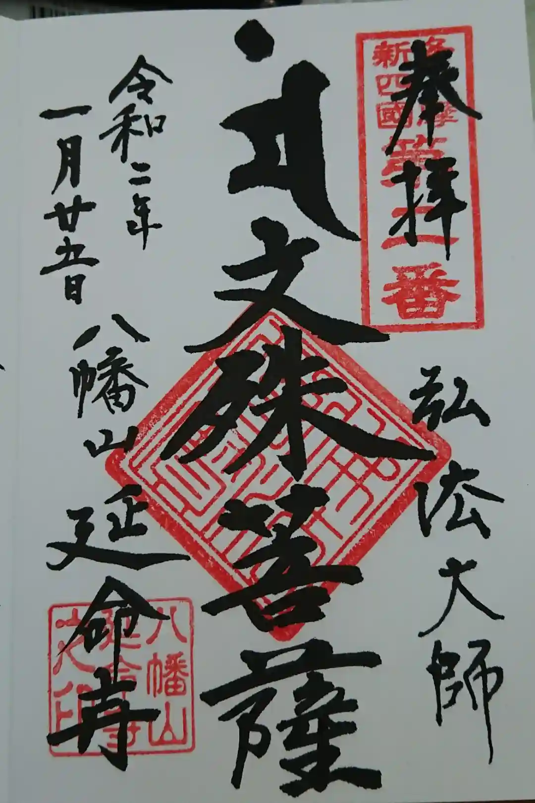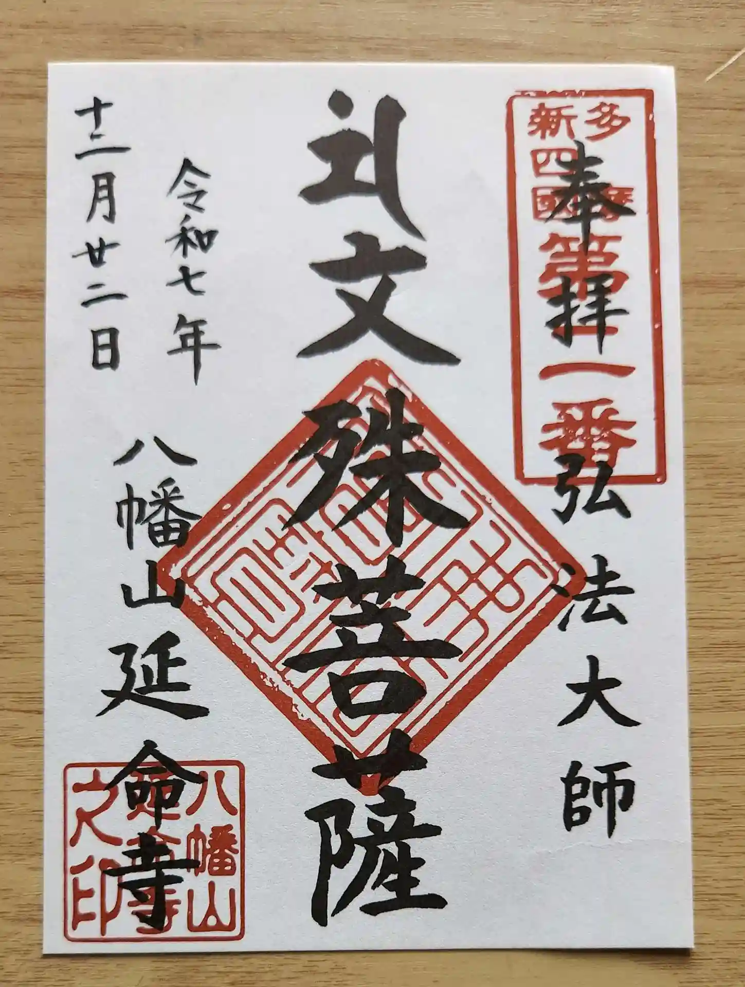 御朱印は、4種類(本尊の文殊菩薩、霊場の観音様、七福神2種)。いずれも書き置きです。