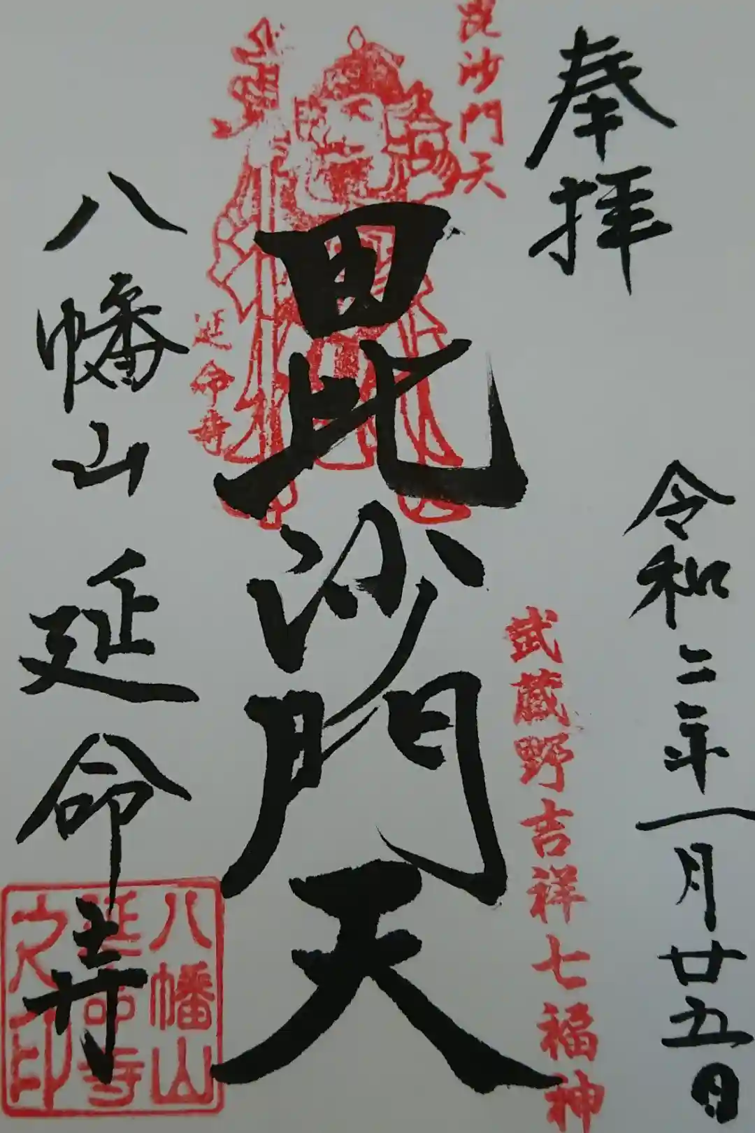 毘沙門天と寿老人の御朱印をいただきました。