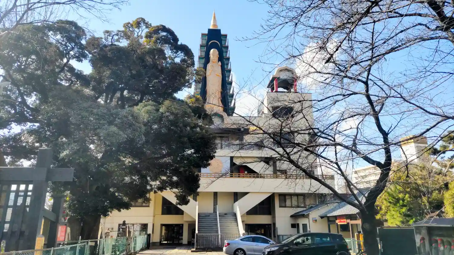 屋上にど〜んと観音さまがいらっしゃいますが、…