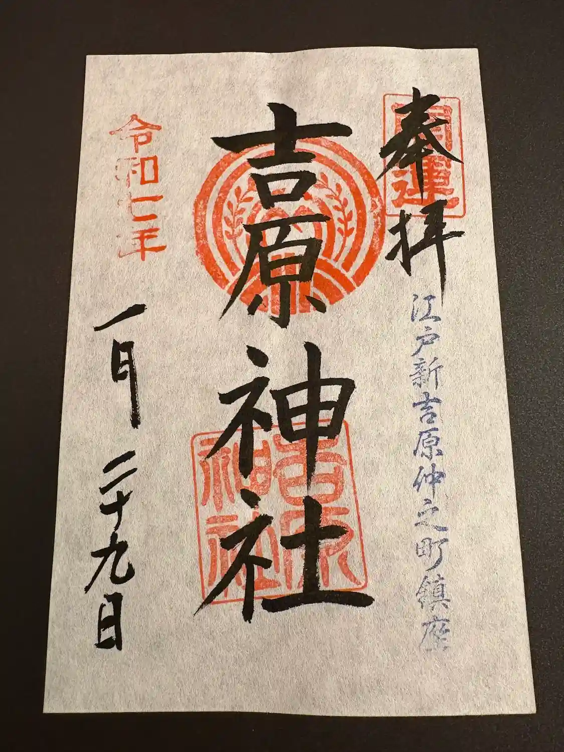 吉原神社の御朱印(書置き)