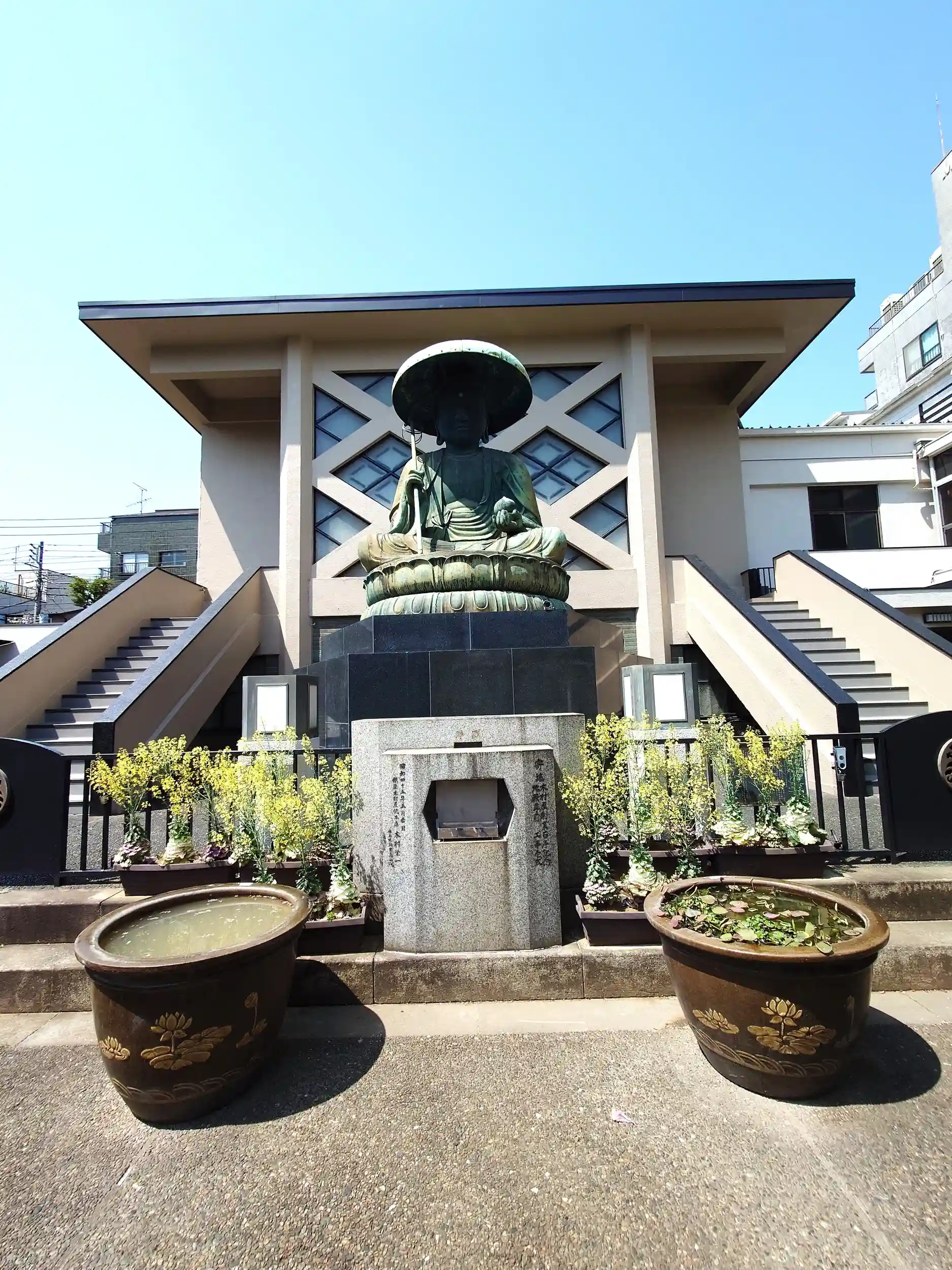 東禅寺前まで来ると一際目立つ大きなお地蔵様が寺院前に鎮座しています。 昔の方々も奥州街道を歩いて旅をする時にこのお地蔵様を見ていたんですね。