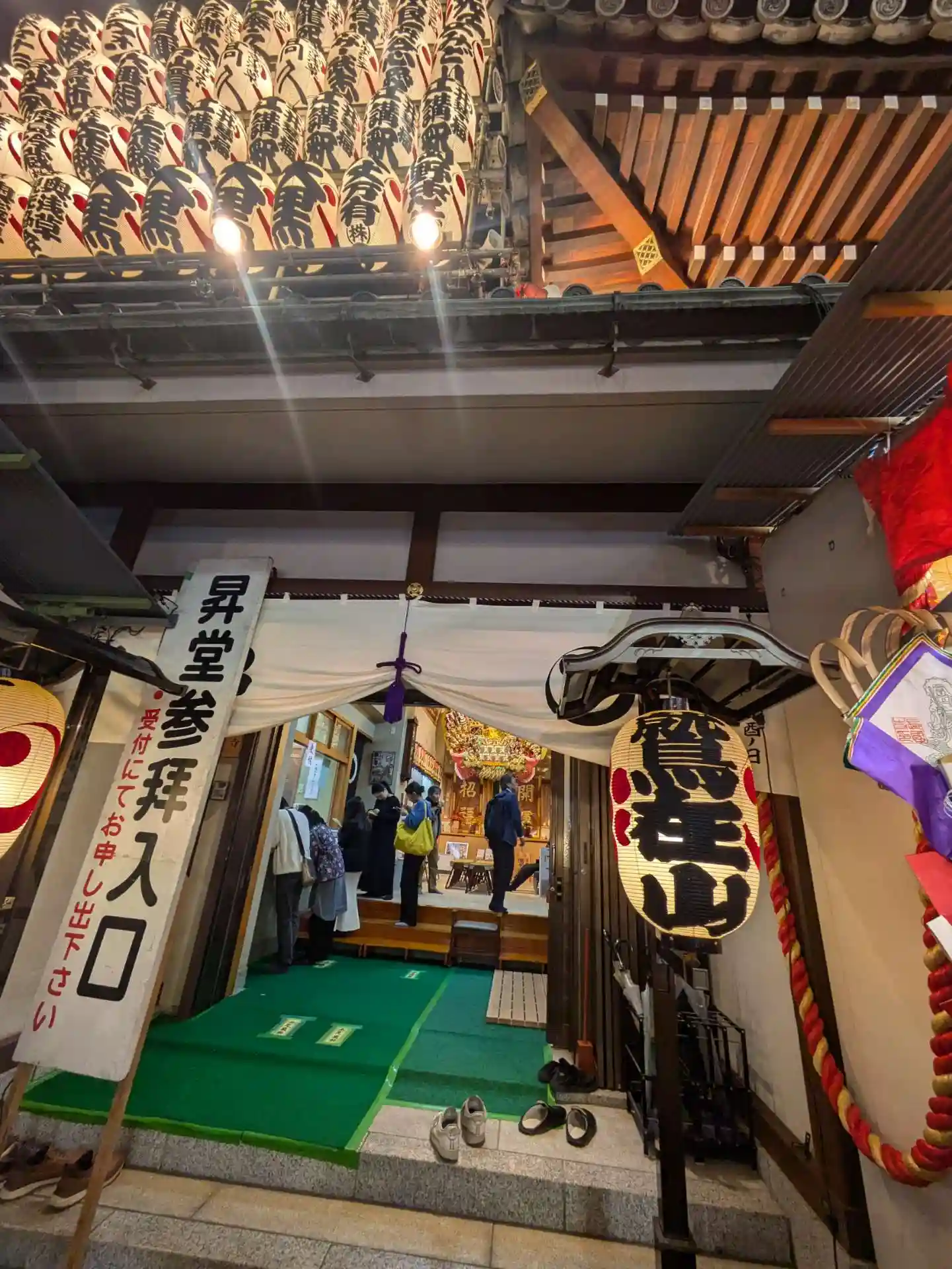 正面の山門以外の入口には提灯