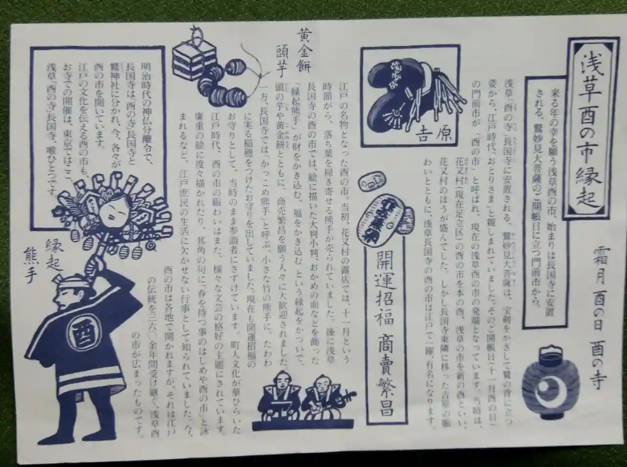 酉の市発祥の文字が見…