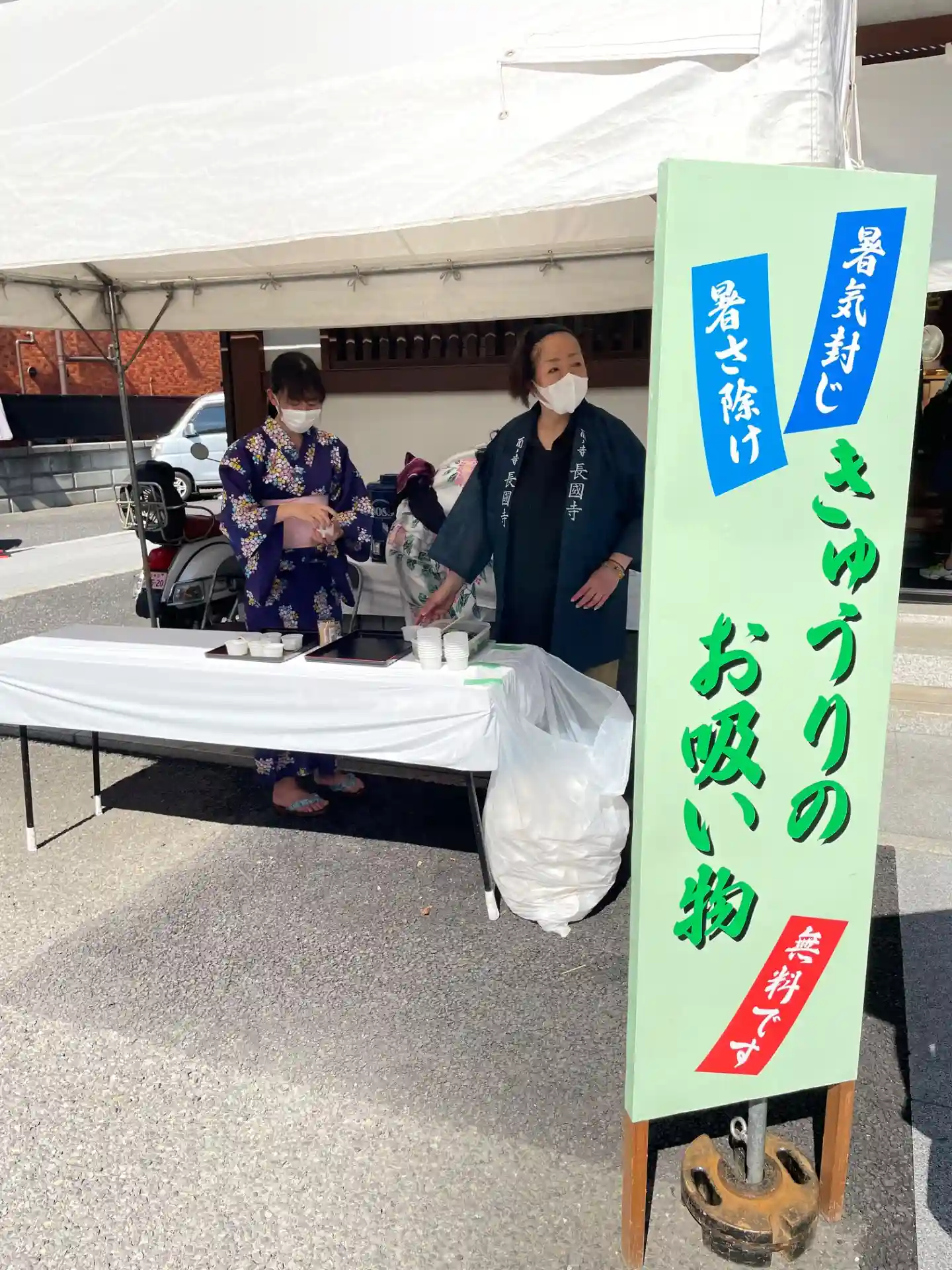 夏バテ防止のあったかいきゅうりのお吸い物無料でいただきました。