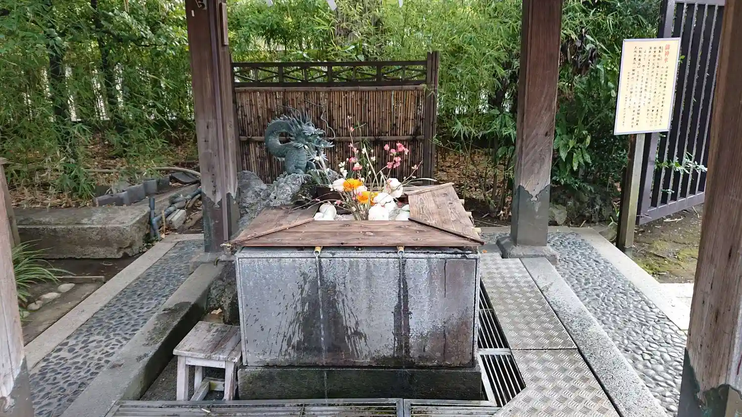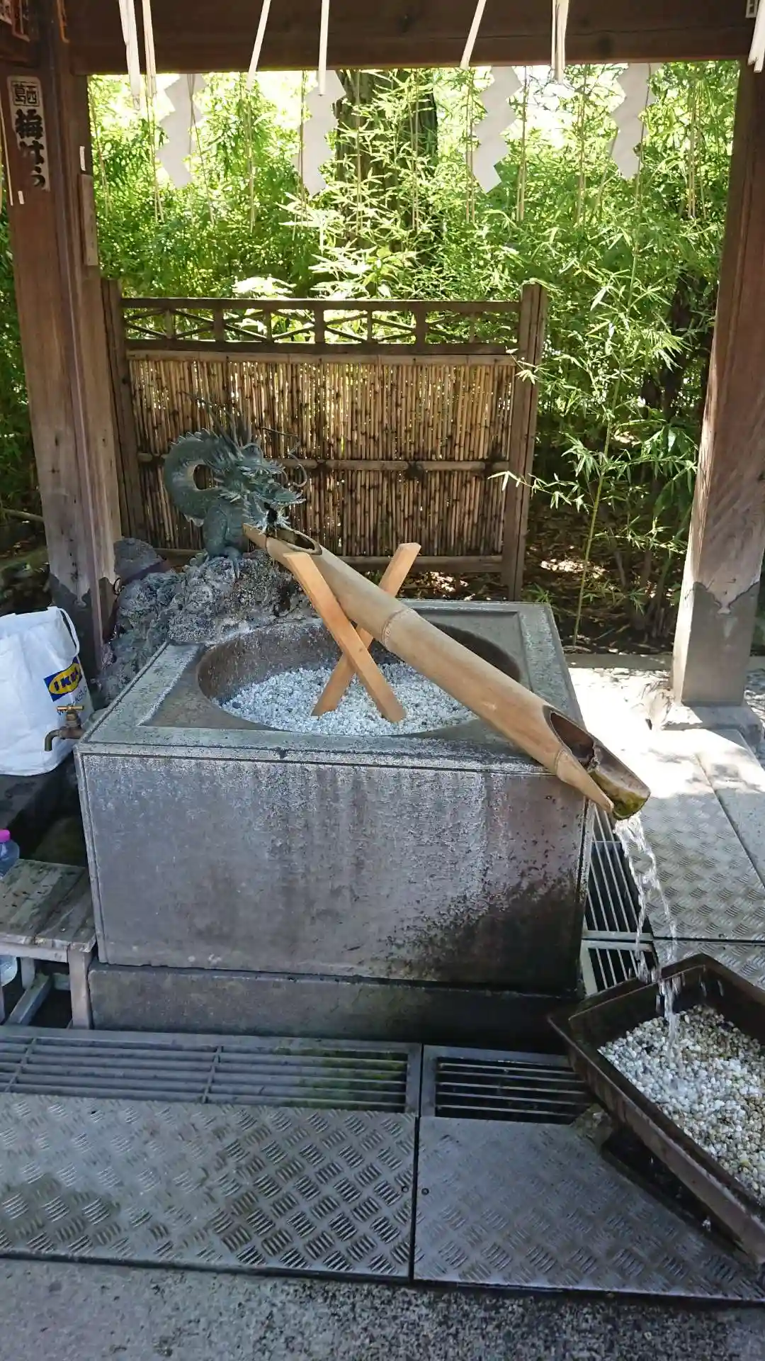 大きな通り沿いにある鳥居をくぐると、手水舎はなく、別の通り沿いの鳥居をくぐるとありました。 ご神…