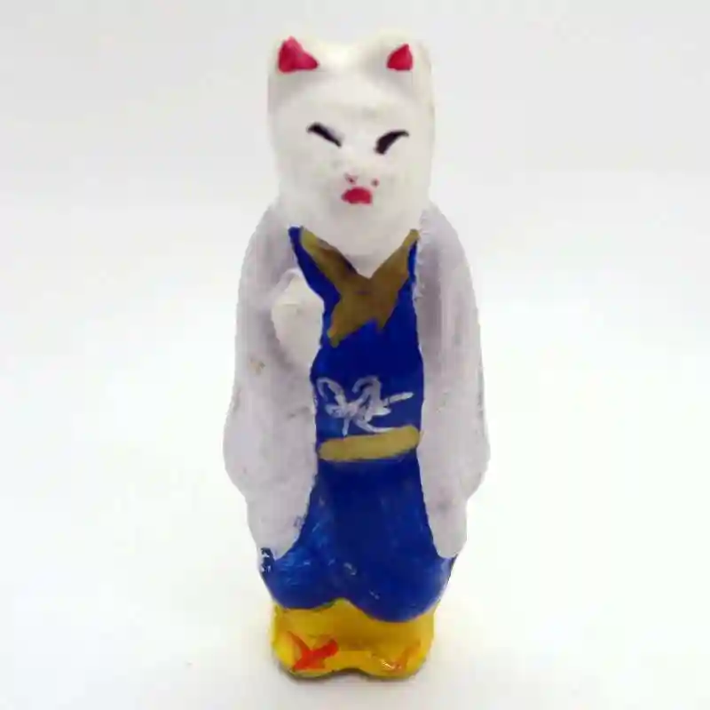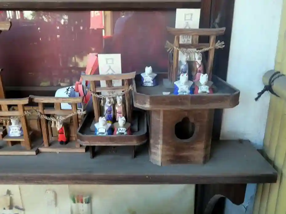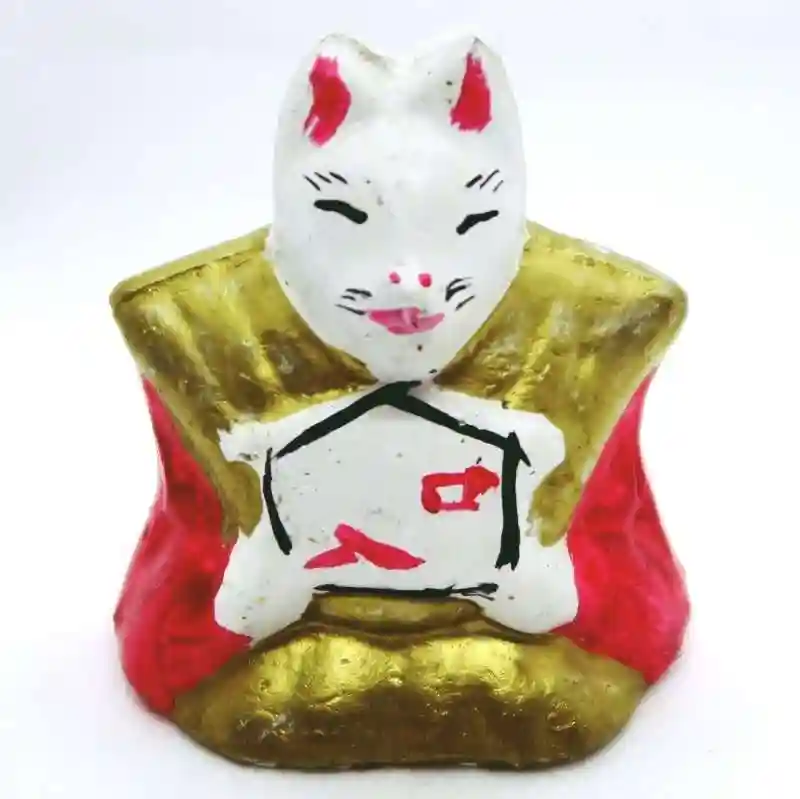 羽織狐(高さ8.5cm)、裃狐(高さ6.5cm)の2体の口入り狐(今戸焼製)は、台東区にある「口入稲荷神社」で授与されています。