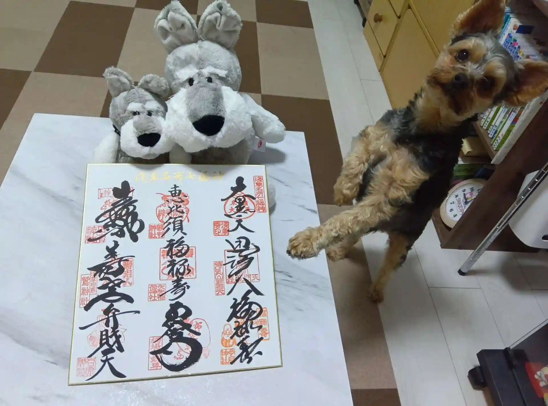 浅草七福神の色紙のできあがりです。記念写真を撮りました。