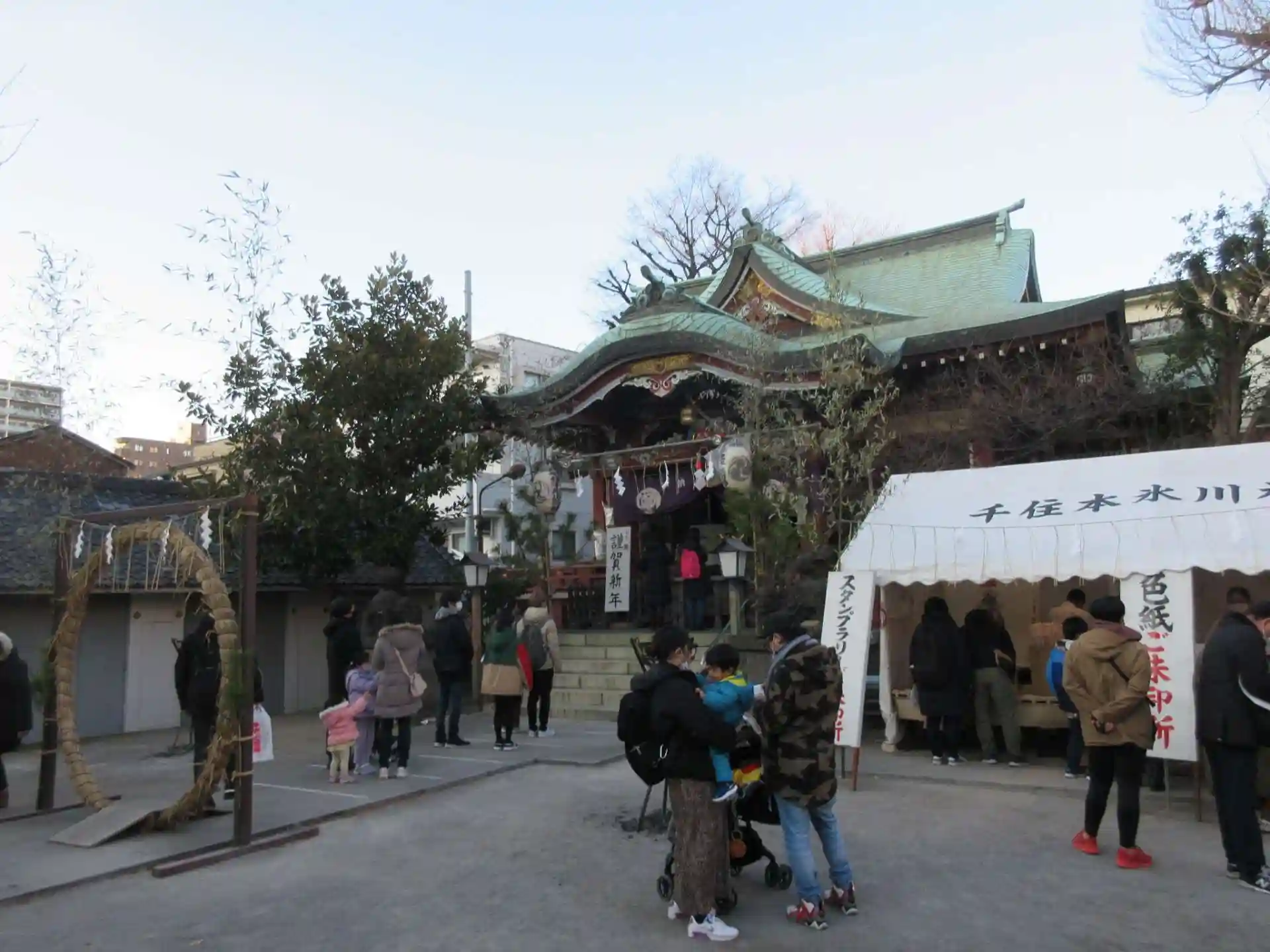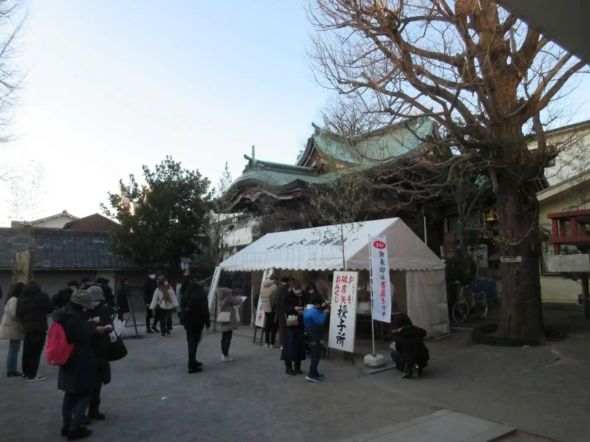 北千住駅近くで多くの参拝者が居ました。