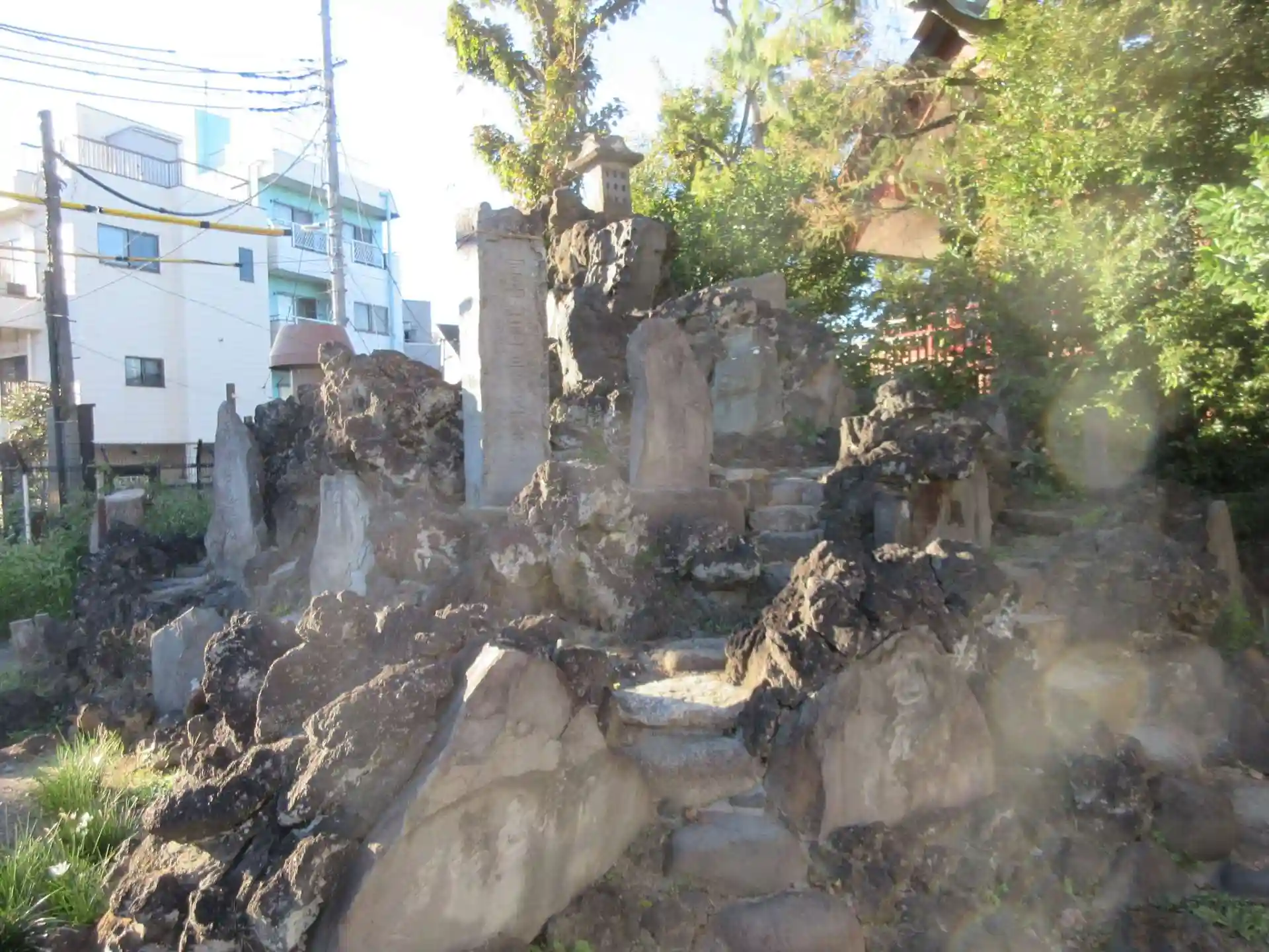 墨堤通りを渡って進んで行き、タカラ湯の角を右折して進み、左折しておおもん商店街を進んで信用金庫の角を左折するとずっと先の突き当たりに鳥居が見えるのでそちらにずんずん進んで行く。突き当たるのは五丁目大川町氷川神社。こちらは正面ではなく脇の入り口なので境内に入るといきなり富士塚がある。本殿前に進んでお参り。ここは千住七福神の布袋尊。