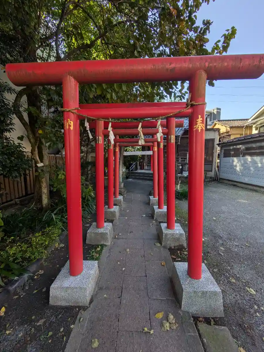 荒川のすぐ近く千住桜木に鎮座されています。小さな神社ですが、赤い鳥居に趣があります。