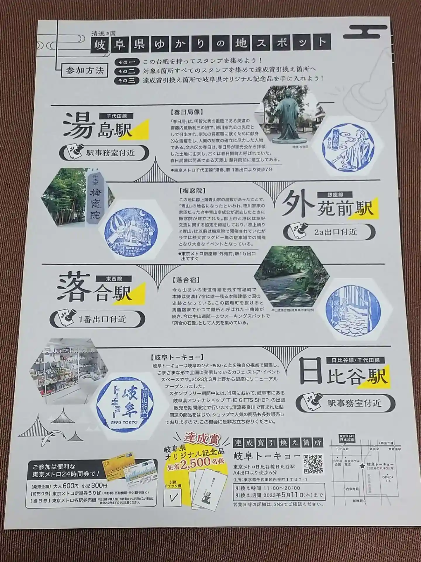 「東京メトロ岐阜県ゆかりの地スタンプラリー」
