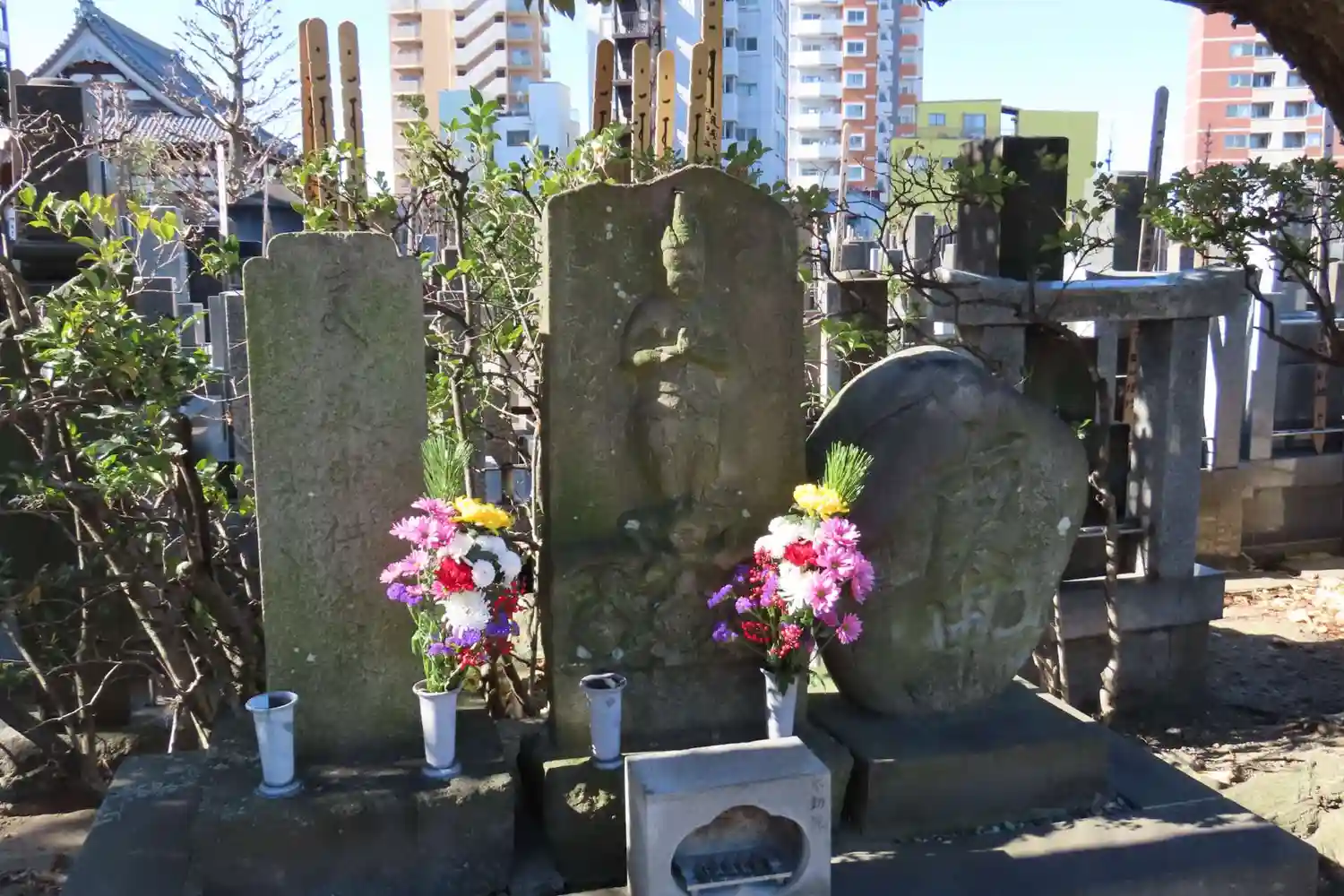 東京芸術センターのすぐ近く、木々が多く静かな境内には戌辰戦争で戦死した人たちの供養搭、魚類の冥福を…