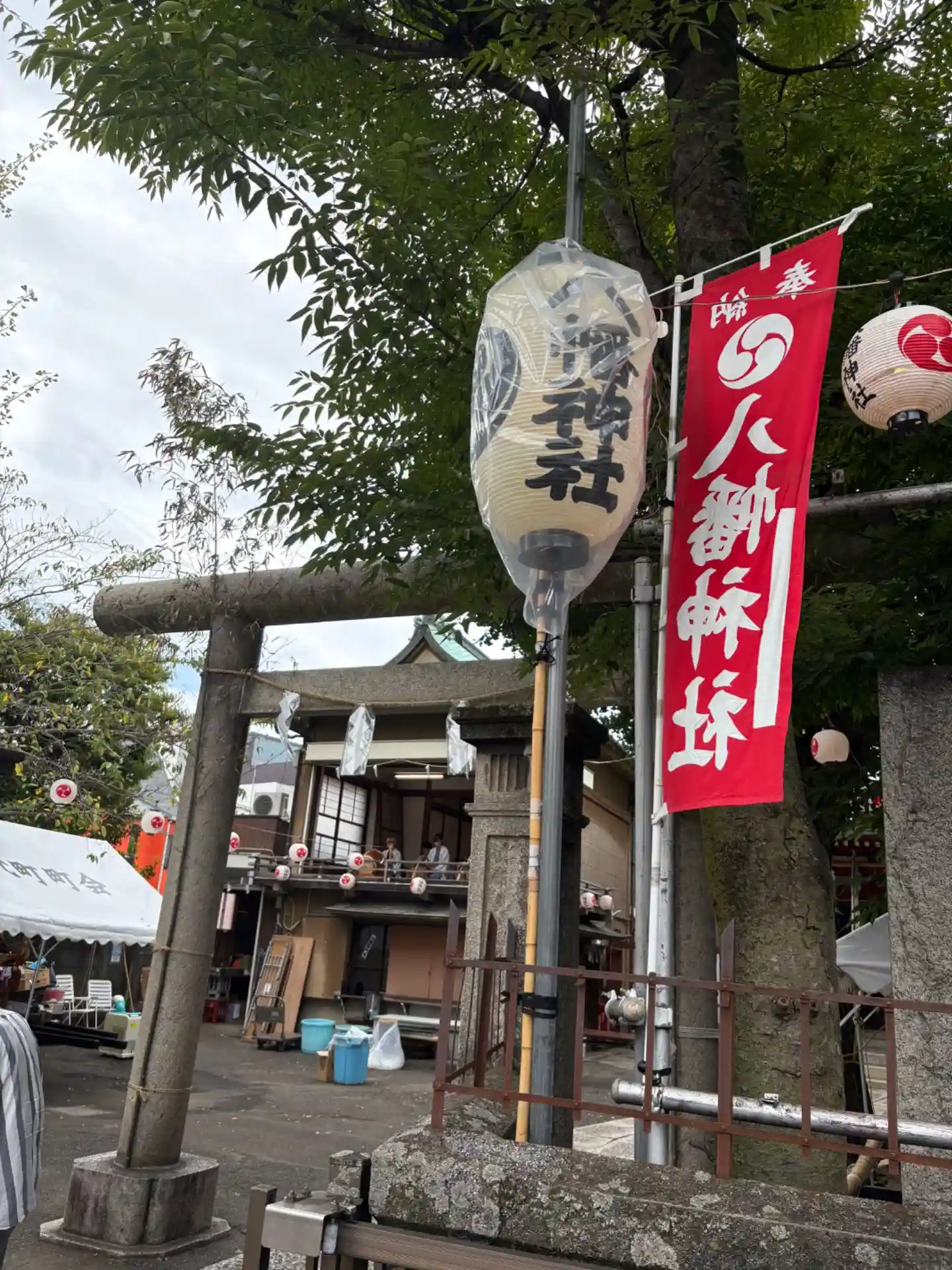 神楽殿が開いててお囃子が演奏されてました。こちらの神社も千住の大祭の一環のようで