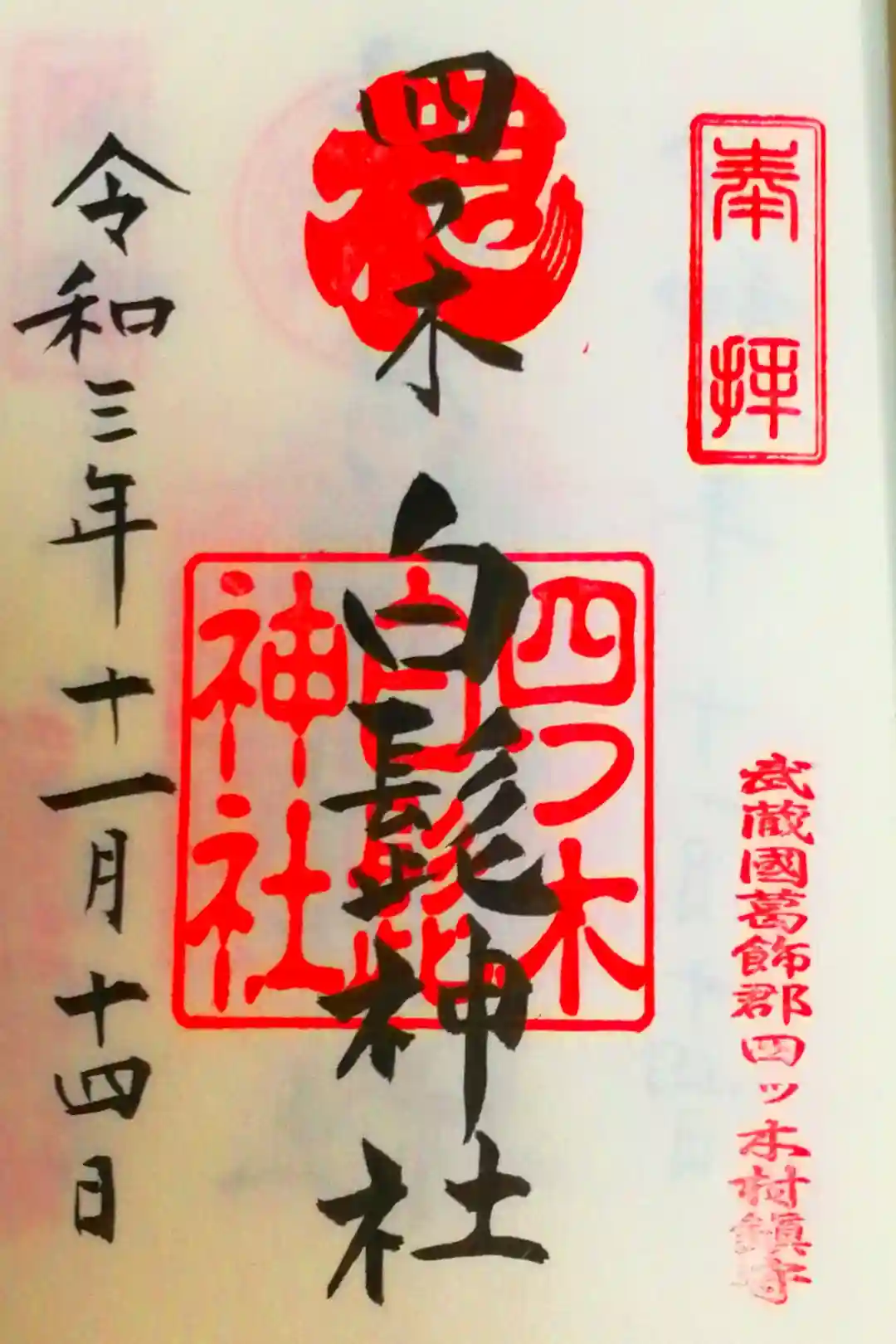 四つ木白髭神社〜御朱印 渋江白髭神社にて受領