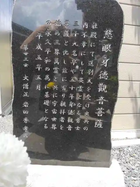 慈眼寺は、真言宗豊山派の寺院として、観音菩薩を本尊としています。本堂には正観音像が安置されております。