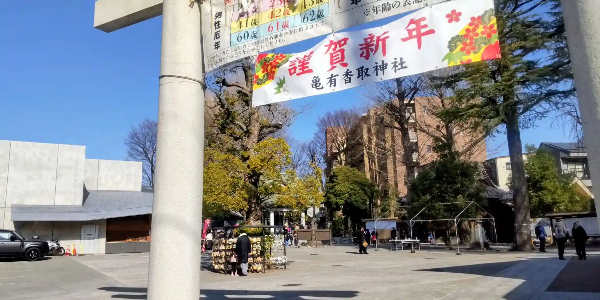 側にはアリオ亀有があり、ファミリーには参拝しやすい立地。マルシェなどのイベントも定期的にあるんですね。