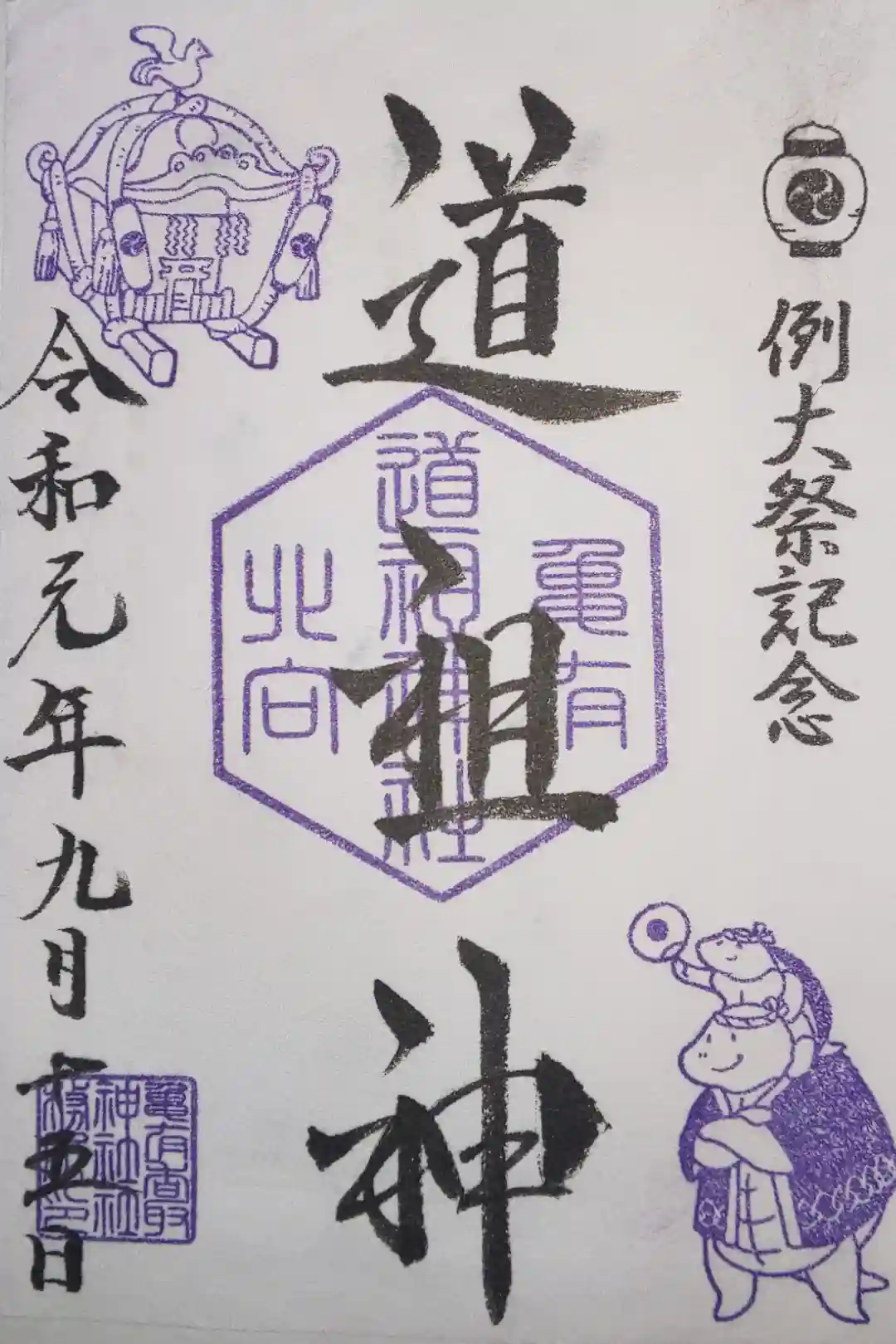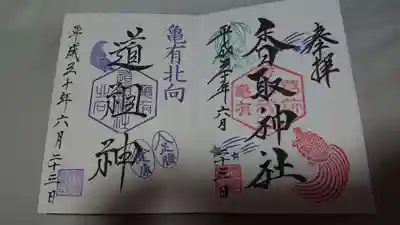 摂社の道祖神の御朱印も頂けました。少し紫がかっています。