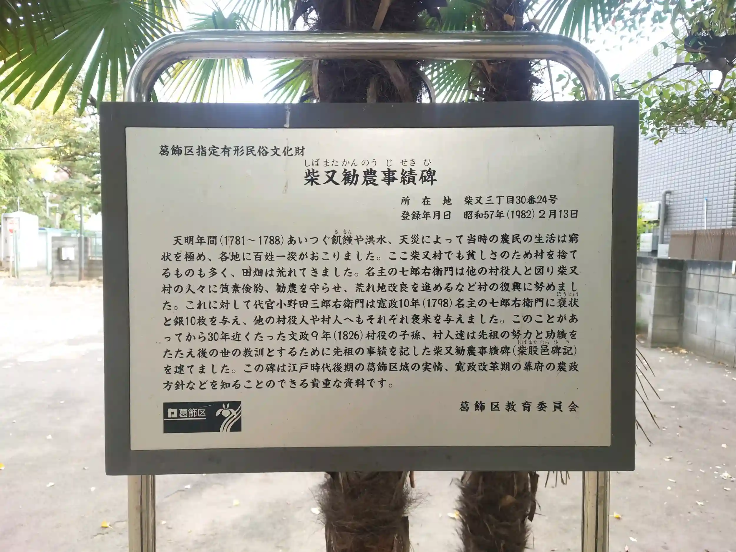 発見された人骨は、社殿裏にある『島俣塚』に祀られています。島俣とは721年の戸籍に書かれている柴又の古地名のことで、「しままた」から「しばまた」に変わっていったと云われています。