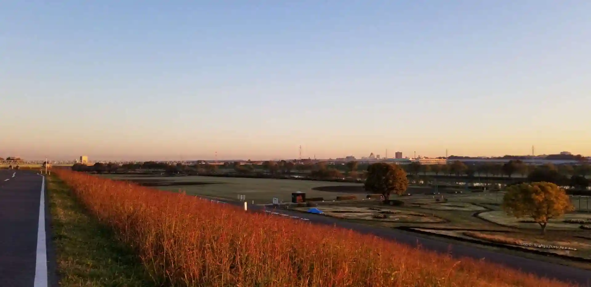 徒歩10分のところの中川大橋から望む夜明け