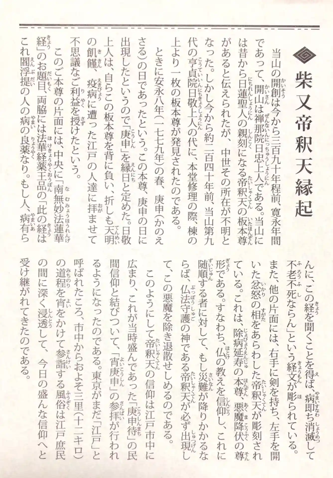 帝釈天出現由来碑