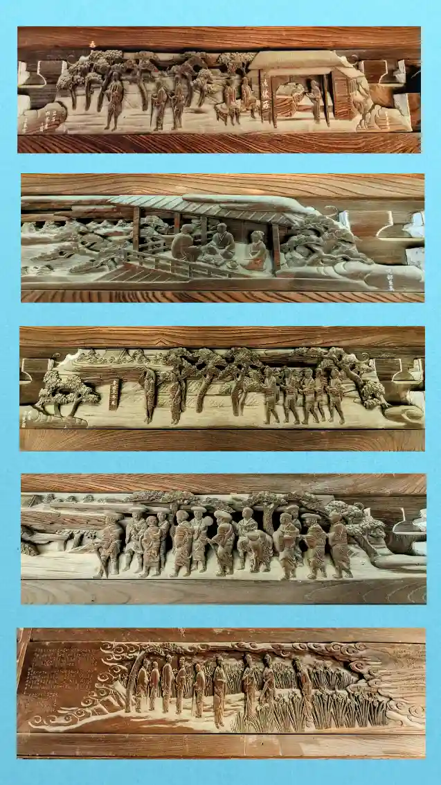 四手先の豪壮な枡組と、日蓮聖人の御生涯を中心に全体に亘って木彫を配し荘厳されたその造りは、鐘楼堂建築としては関東においてこれに比べるものはないと言えるものです。
