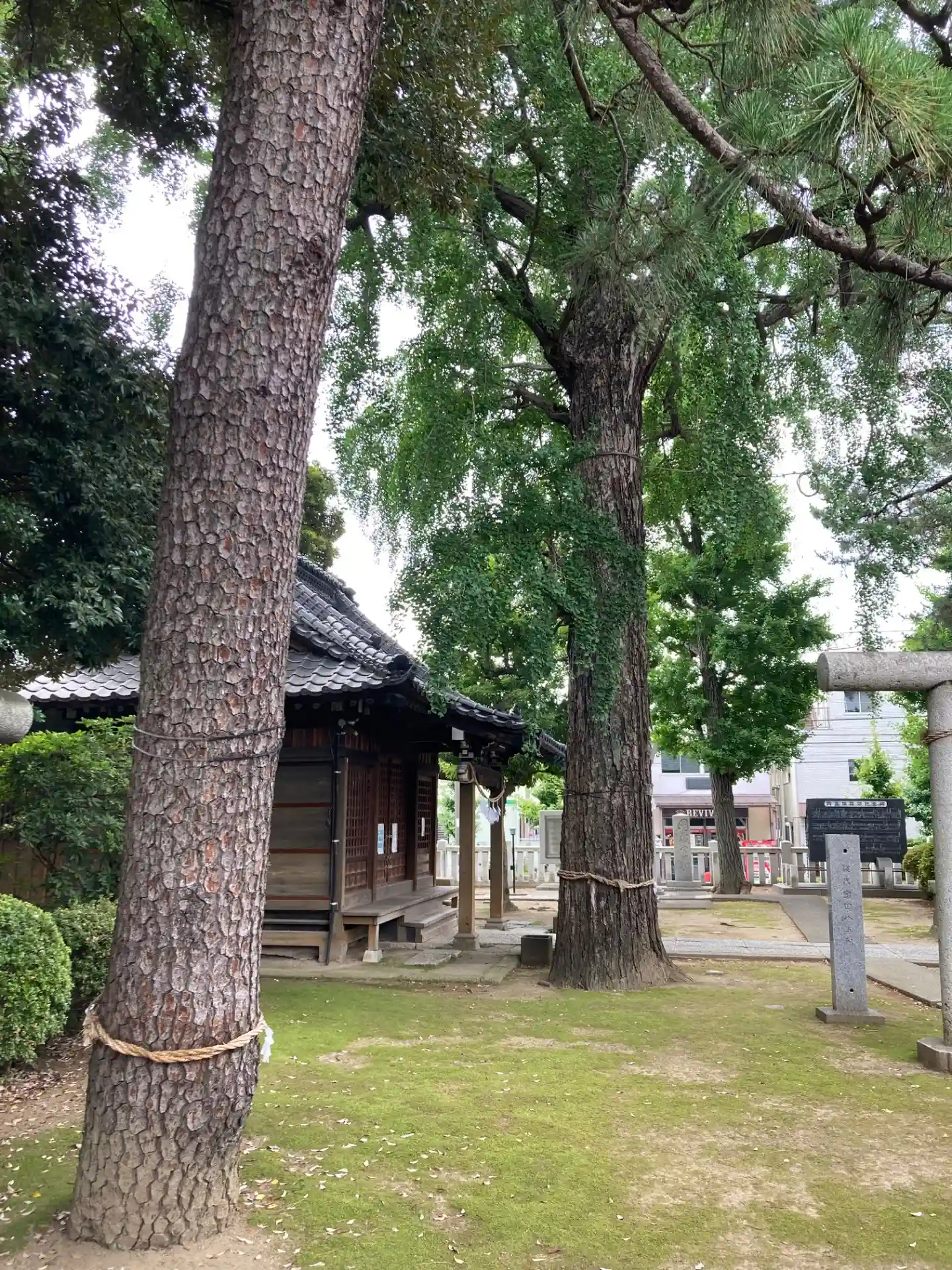 太くて立派な松と銀杏に囲まれています。