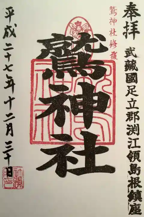 2015年の12月末、足立方面のウォーキングとともに神社巡りをしてきました。島根の鷲神社に参拝してきました。